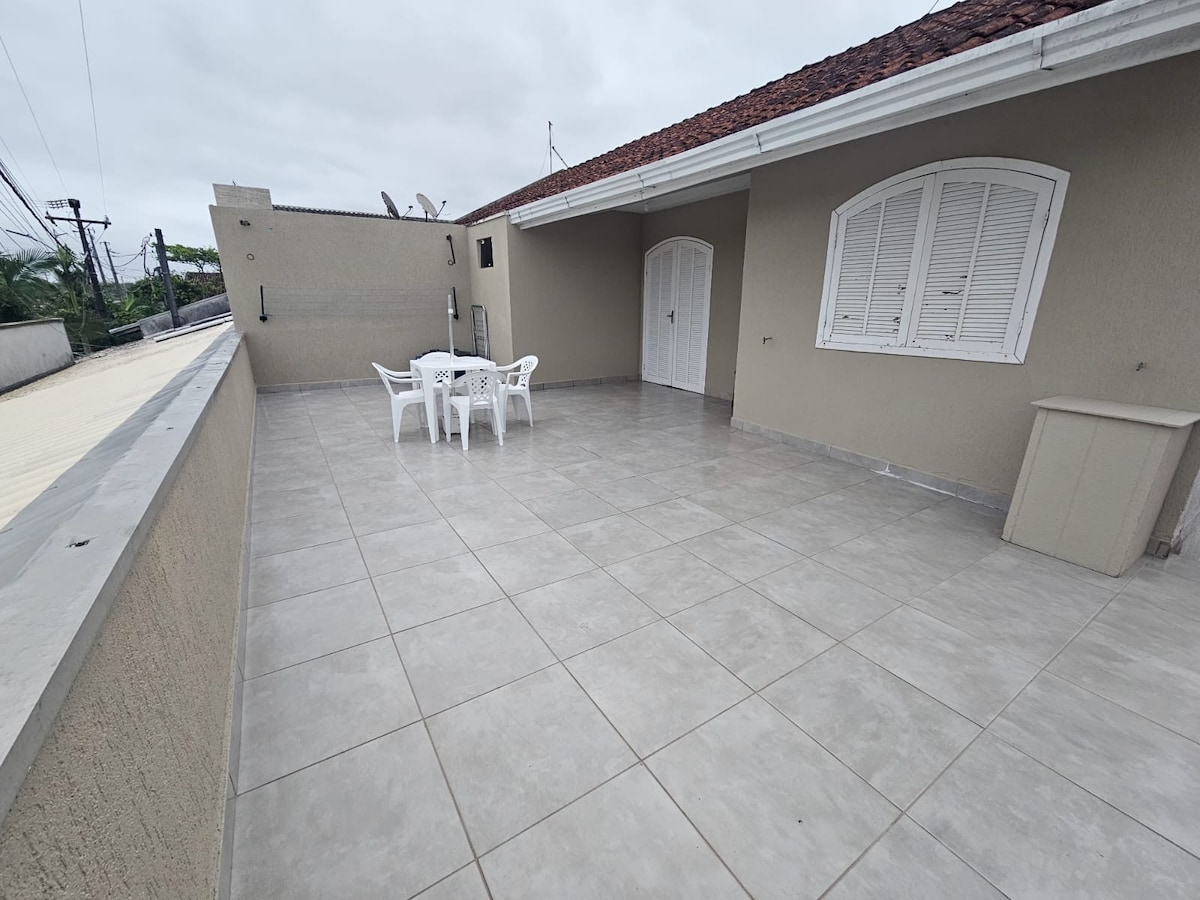 Fica a 1 quadra da praia. Com sala/cozinha (bicama) + 1 quarto (suíte, cama de casal), tem todo conforto para o hóspede economizar $ e cozinhar no local (fogão, geladeira e utensílios domésticos, churrasqueira e lavanderia externa). Acomoda até 4 pessoas. Fica nos fundos da minha casa, possui portão divisorio entre as casas. É permitido pets, desde que dóceis. O carro deve ficar estacionado paralelo à rua (vizinhança tranquila). Avisar sobre checkin após as 21h, pois serão avaliados .