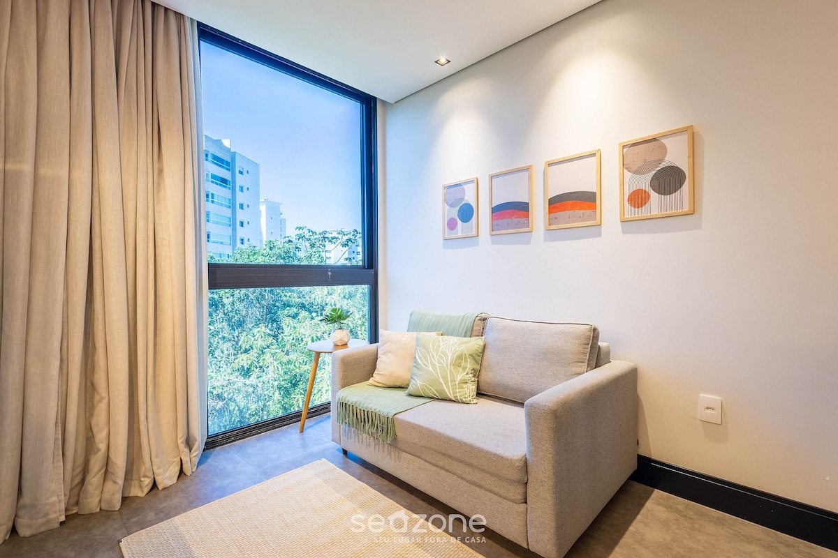 Just a few meters from Praia Brava, this studio reuses rainwater, ensuring a sustainable and eco-conscious stay. It features Alexa for voice control and offers ultra-fast internet. Comfortable accommodation with a queen bed, sofa bed, and fully equipped kitchen, plus a welcoming balcony with a view of nature. Close to markets and restaurants, the location is unbeatable. Live unforgettable moments in Balneário Camboriú!