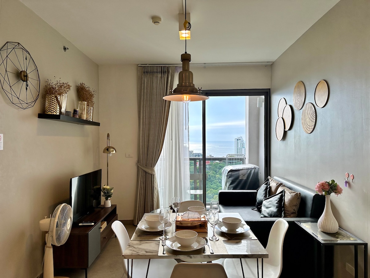 BEST SUNSET☀️ view in town! Perfectly located at the foot of Pratumnak Hill, this 30th floor home offers a panoramic view of BOTH the famed Budda statue & the gorgeous coastline. Only 2 min walk from busy streets for tasty local food and 7min walk from the major pier&gocart track. 12mins to Walking street. FREE shuttle to shopping malls. Swimming pools&gym& sky gardens. This deluxe condo is designed and furnished with top-notch decor&appliances. It feels like home away from home in Pattaya!!