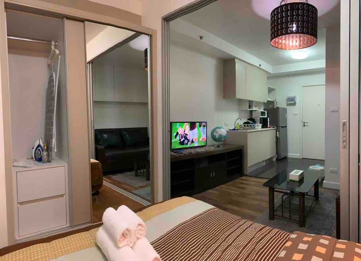 Cozy, Comfy 1 bedroom condo by poolside. Large balcony best for sun-tanned. Super privacy and close to nature. splendid view. The condo is 1 bedroom with 45.68 sq.m located on the first floor which out from the room and jump to the pool. - Pickadaily Bangkok in front of the condo - The condo is fully furnished with king size real bed, night light, sofa and dinner table for 2. - Bathroom with tempered glass shower screen another listing of mine: https://www.airbnb.com/rooms/34949426?s=51