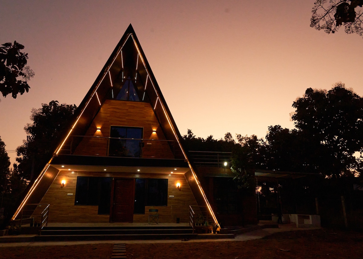 Beanstalk Farms – The Prism The Prism is a stunning A-frame retreat surrounded by nature, offering modern comfort, airy interiors, and beautiful views. With spacious rooms, large glass windows, and a cosy balcony, it’s perfect for families, groups, and long, relaxed evenings. Set in peaceful farm surroundings and proudly pet friendly, it’s an ideal escape to unwind, reconnect, and enjoy slow living at Beanstalk Farms. Reconnect with nature at this unforgettable escape.