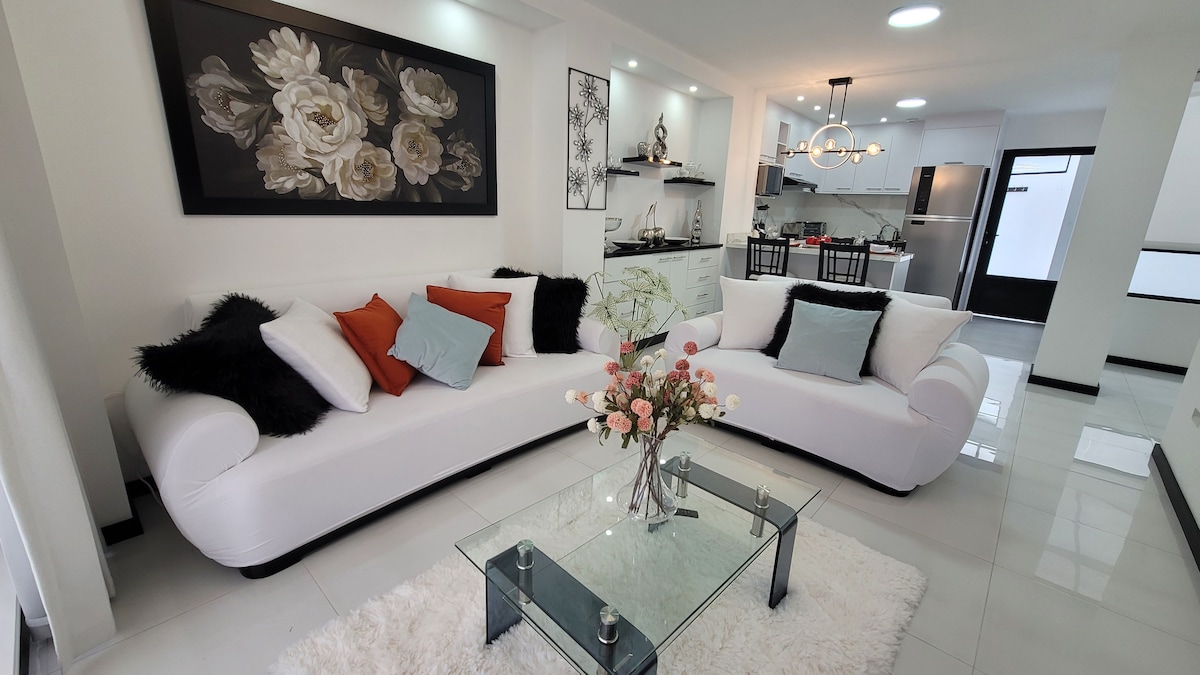 It is a wonderful place where you can rest and feel at home, elegant, with all the latest technology at your fingertips, two bedrooms with king size beds, private bathroom, social bathroom, black out blinds, Alexa, fully equipped kitchen. In addition to being a very quiet space, with all the security, in an exclusive sector and in the best location, in the middle of the best restaurants and attractions, everything can be done on foot. Perfect for families or business travelers. We look forward to seeing you!”