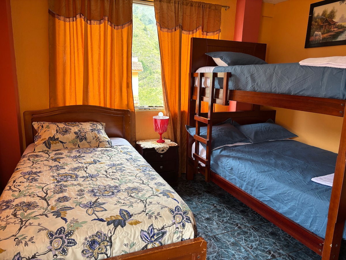 Welcome to Flatshare! A full, comfortable apartment with character – designed for groups of up to 8 people who want to enjoy Baños with total freedom and privacy. Located in the heart of town, just steps from the Basilica, hot springs, waterfalls, nightlife, tour agencies, markets, and everything you need to experience Baños to the fullest. It's a fully equipped apartment. It’s the ideal space to rest, recharge and explore the best of Ecuador.
