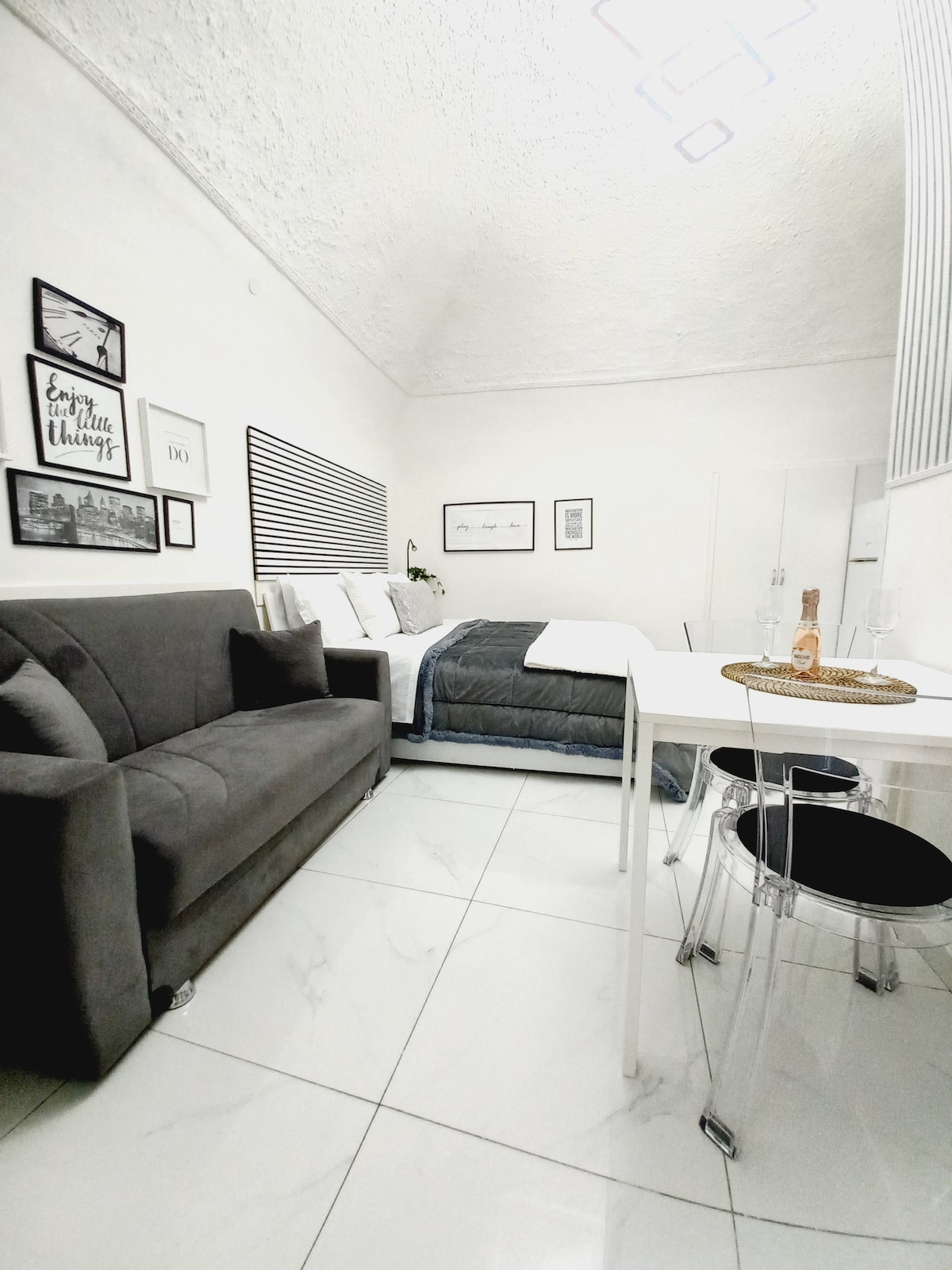 Beautiful two room apartment composed of an ample bedroom, living room, kitchen and a bathroom . All the rooms have separate access to a small terrace with a fantastic view on Ischia, Procida, and Pozzuoli with Nisida. A hallway allows separate access from the rooms to the bathroom. Being a guest house, we do not serve breakfast. However, please read below what guests will find in the house included in the price. The washing machine is on the ground level- also free use.