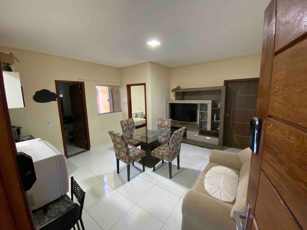 🏡 Stay with "Grandma Iná" and feel at home! 💛 ✨ Ground floor apartment, well located and safe in Morada Nobre — one of the most valued neighborhoods in the city. 🛋️ Furnished, with Smart TV, Wi-Fi, air conditioning and everything for those traveling for work or with family. 📍 Excellent location: ⚽ In front of the Beach Tennis and soccer courts 🛒 800 m from supermarkets 🎓 1.9 km from UFOB 🏙️ 2.5 km from downtown