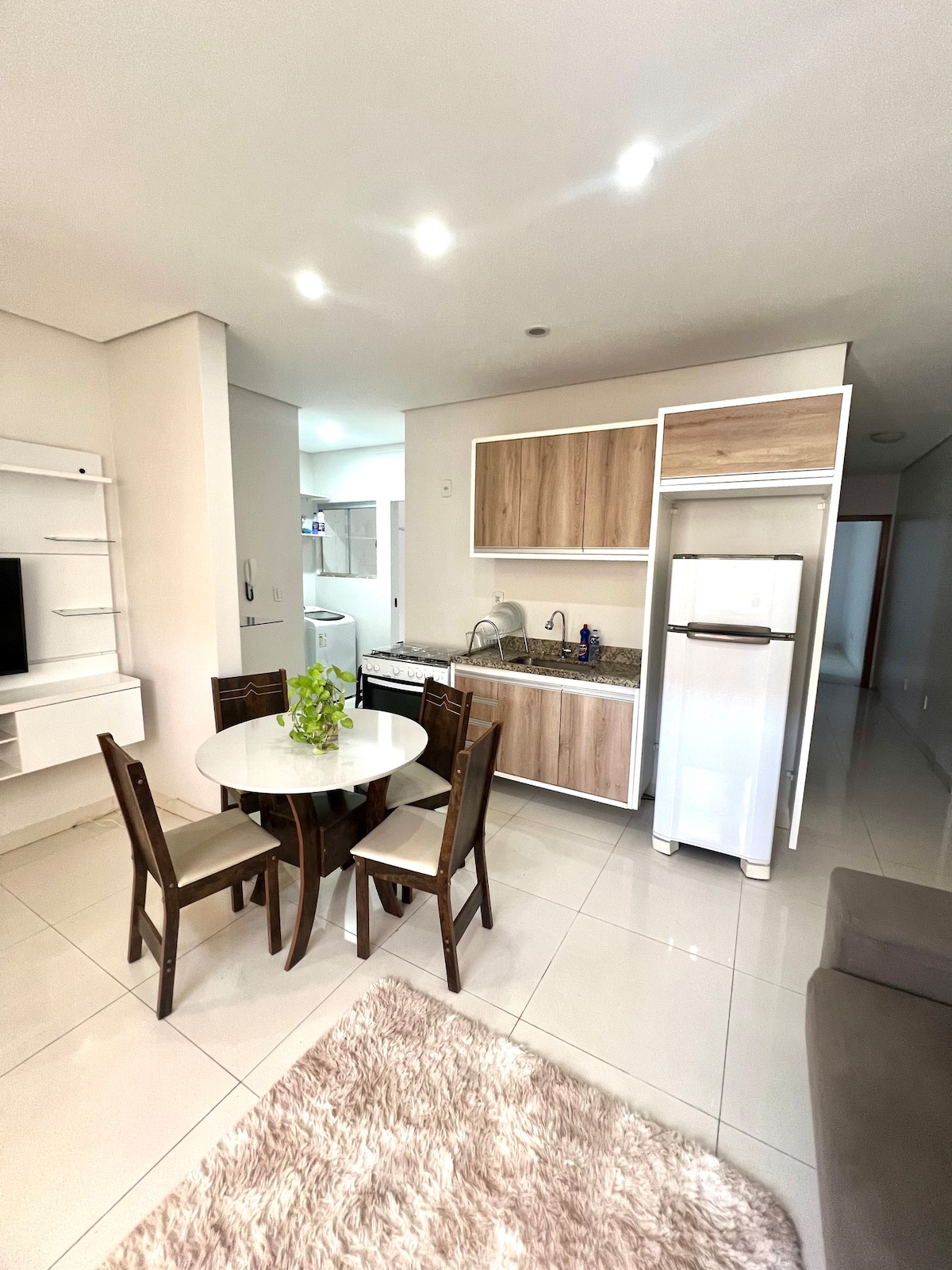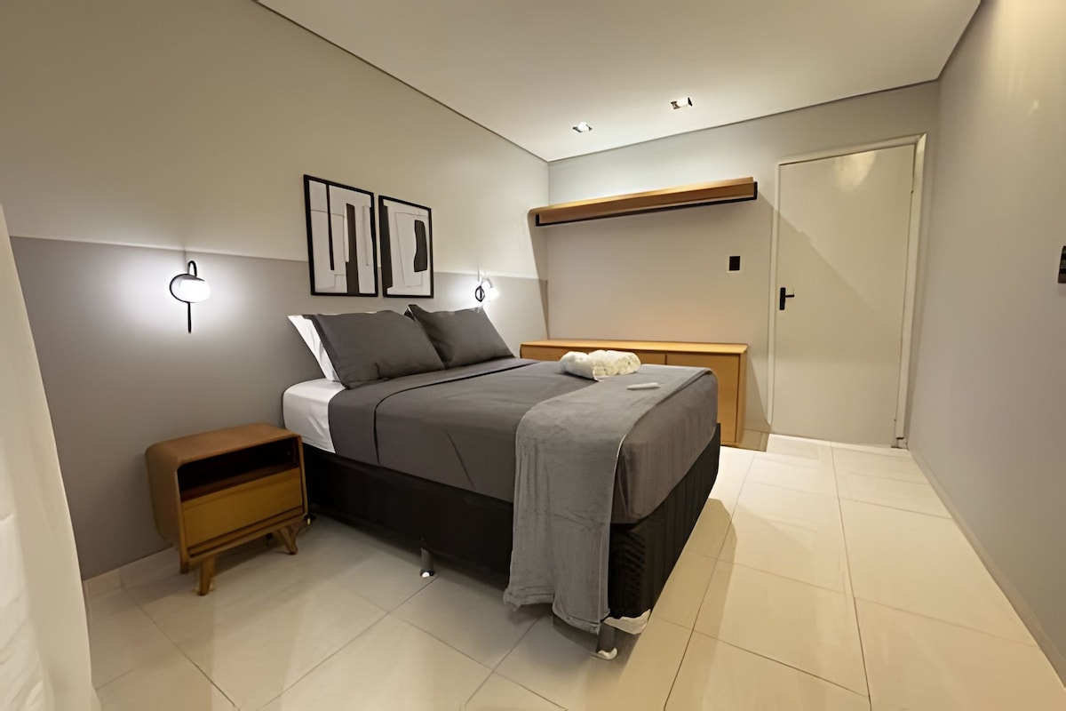 New and cozy studio in Barreiras/BA, in the Renato Gonçalves neighborhood. With a full kitchen, air conditioning, Wi-Fi, TV, washer and dryer and private bathroom. Building with swimming pool, outdoor dining area and gym. 13 km from the airport, 3 km from the historic center and close to Rio de Ondas. Ideal for rest or work. Comfort and hospitality await you! 🌟