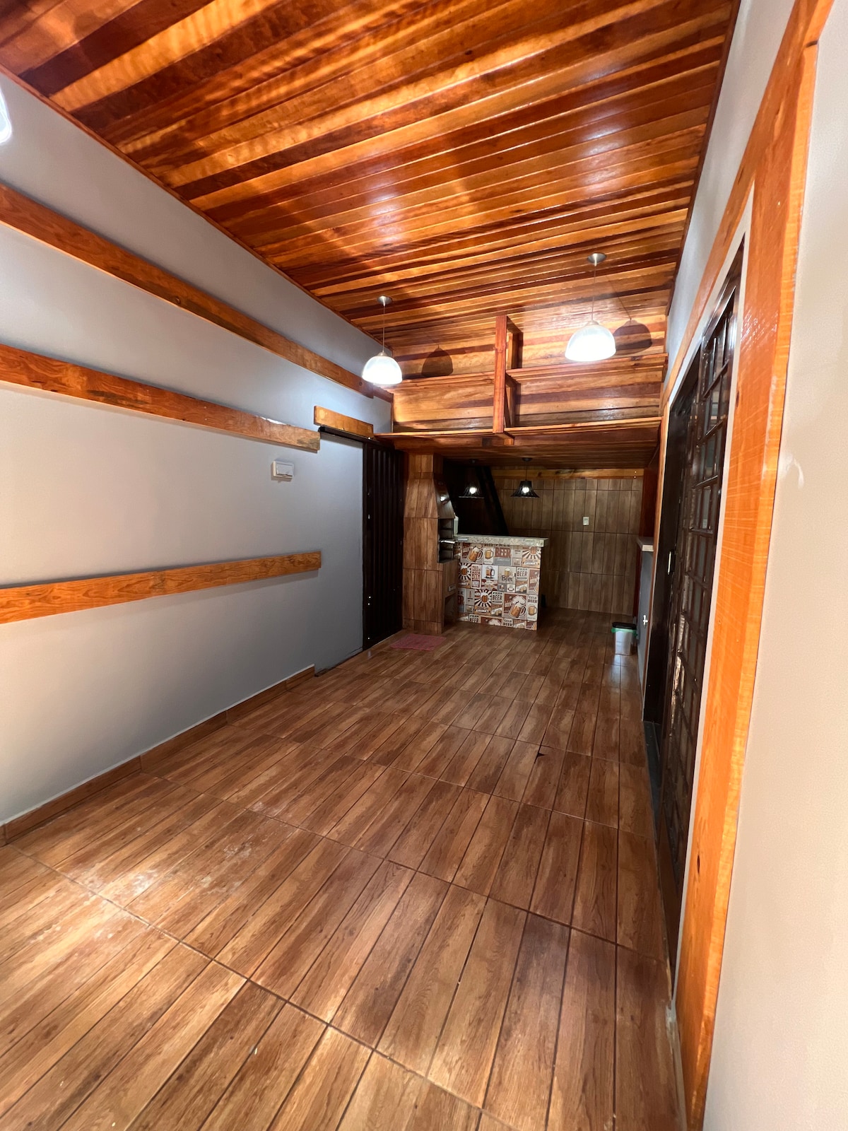 2quartos: 1 double bed 1 treliche 1 sofa-bed 2banheiros(1interno and 1externo) 2 mirrors 1quarto casal 1banheiro Living room and kitchen Laundry and balcony Air-conditioned master bedroom, designed to also air-condition the single bedroom and the living room (29m²), keeping doors closed Kitchen with wall fan Gourmet balcony with barbecue and counter All-covered house, including the outdoor area Covered garage 1 large vehicle (truck) Safety cameras in the sidewalk garage Alexa5