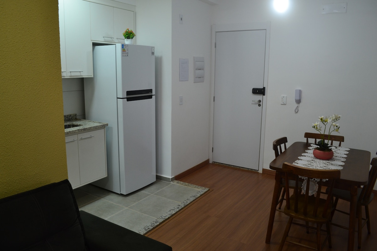 Brand-new, modern, fully equipped, and cozy apartment, all air-conditioned, and well-lit. 2 min, 600 m from Hospital do Amor 2 min from Barretos country park 5 min from pedestrian park family, safe and quiet environment 2 min from medical school Near the mall Check in on your own using the smart lock