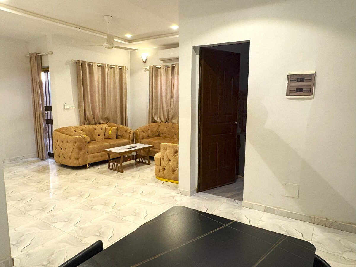 Discover this spacious home in Ouagadougou, just 5 minutes from the Universalis complex school. Ideal for families, friends, or business travelers, it offers three cozy bedrooms, a living room with a 65-inch TV, a terrace with a lovely view, and four bathrooms (three indoor, one outdoor). Enjoy a large courtyard, high-speed Wi-Fi, a washing machine, cleaning service, and a nighttime security guard for a comfortable, worry-free stay. Book today and experience the comfort in the heart of Ouaga!