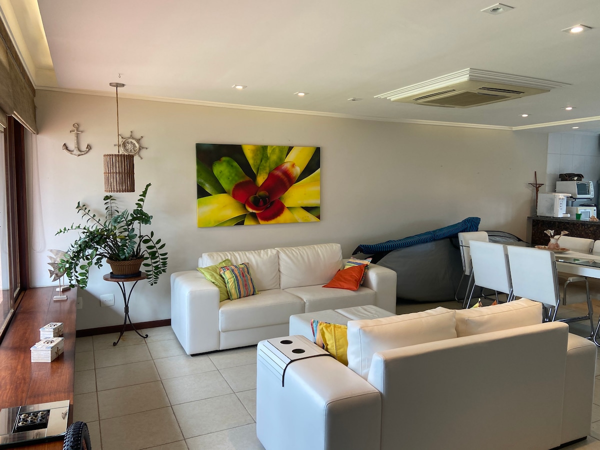 Adorável ap 3 suítes, cond fechado, pé na areia.
