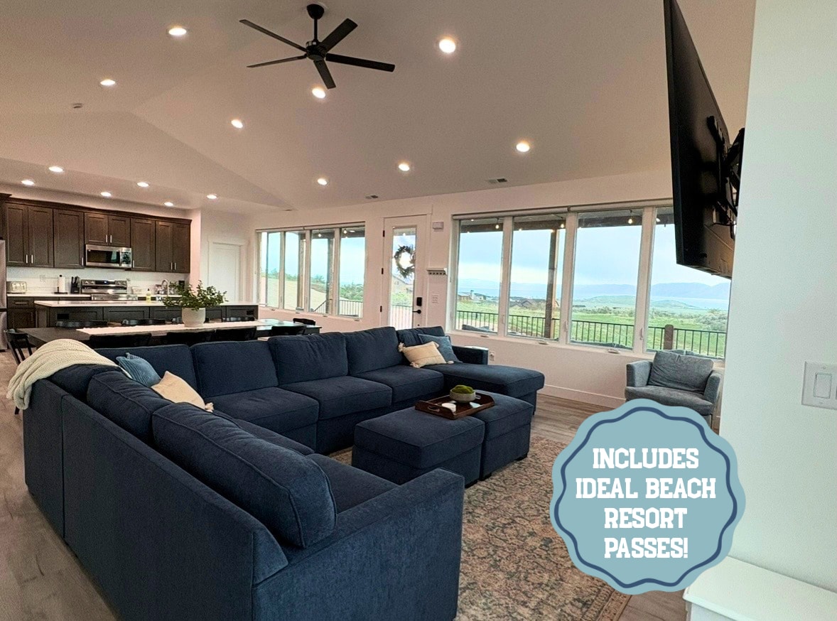 BlackRidge LakeHouse - where you can enjoy amazing views of Bear Lake! Come relax in this calm, stylish space. This 3 bedroom, 3 bathroom home with stunning views of the lake will take your breath away! Every detail has been thought of. You get Ideal Beach Access so you can swim in the pools, relax in the jacuzzis, or play on the beach. Come home and relax on the deck, play cornhole, or basketball. There's even a bunkroom for the kids! Come out and enjoy the best of what Bear Lake offers!