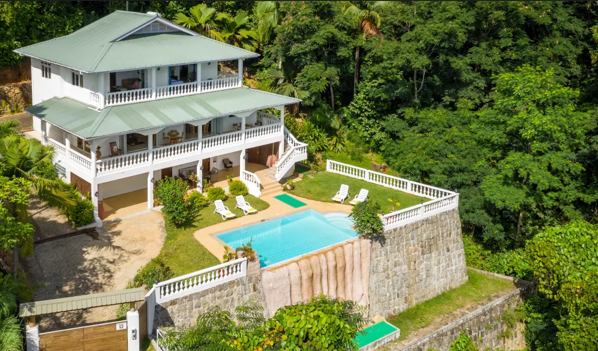 A spacious, peaceful retreat with wide ocean views—ideal for families or small groups. Enjoy the sunset veranda as your outdoor living space, set 90m above sea level for calm and privacy. The villa includes full self-catering amenities and easy access to the coast. We organise car rentals, transfers and group excursions to Praslin and La Digue. For relaxed evenings, we prepare fresh meals you can heat at your convenience.