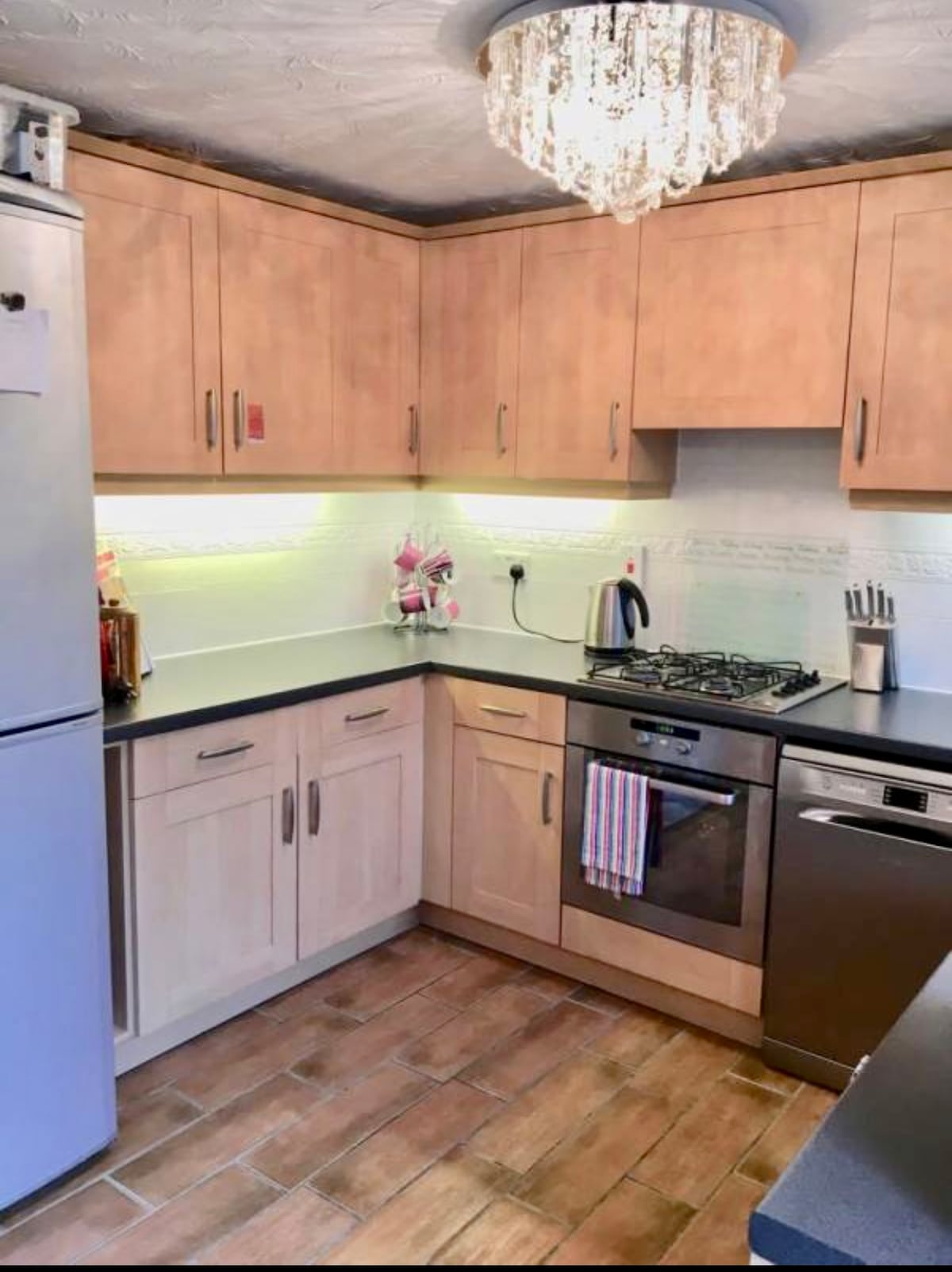 A very large 5 bedroom property located in the beautiful town of Higham Ferrers. The property benefits from 5 king size beds all in separate rooms the master bedroom has an ensuite shared with the joining king bedroom (room has a door to separate the 2 rooms) Large seating area and 55” sky glass tv Driveway space for 3 vehicles There is also a gym for over 18s, full size pool table & darts Large garden to the rear with seating area A truly beautiful house perfect for work or families