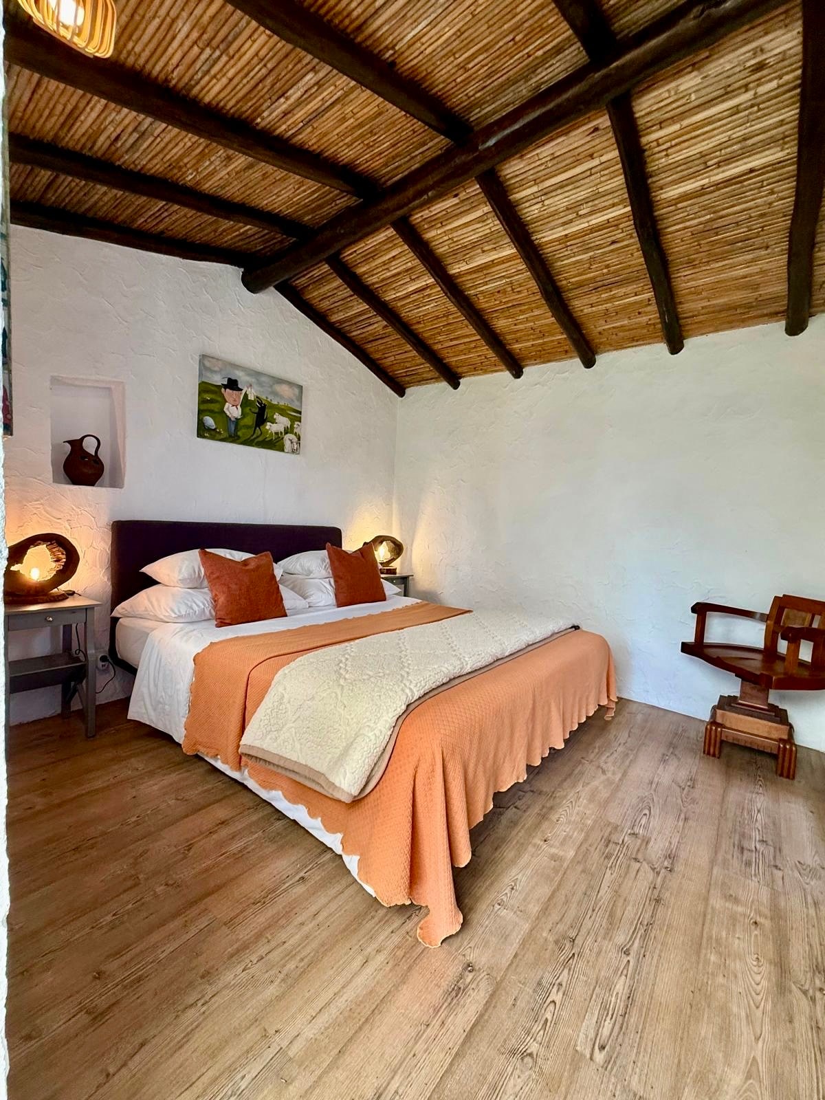 Pequeno quarto rústico com uma cama de casal e uma pequena casa de banho privada no interior. A cerca de 20 metros encontra-se a cozinha partilhada, equipada com panelas, torradeira, talheres e loiça e um pequeno espaço no frigorifico para manter os seus ingredientes frescos. A piscina localiza-se a 50 metros e pode ser utilizada durante a sua estadia. Este é um espaço acolhedor e ideal para quem procura estar no meio da natureza e desfrutar do silencio. O pick-up point é na Zambujeira do Mar.