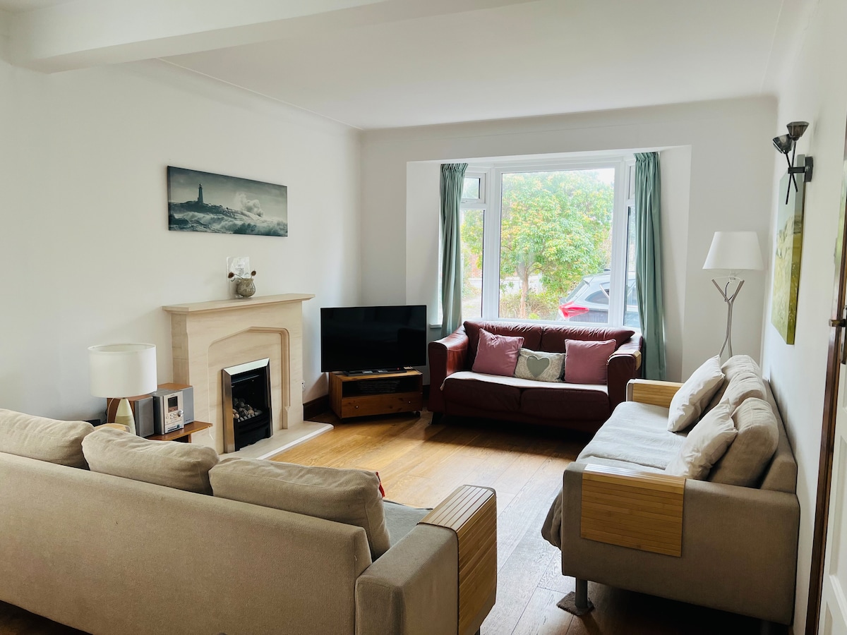 A lovely 1 bedroom, spacious apartment. Recently renovated to a high standard. Free parking with EV charger available. Perfect for a couple or a small (3 people) family. The apartment comprises a modern fitted kitchen open plan to a spacious living/dining room, and modern bathroom (with L-shape bath/shower), double bedrooms. Superfast broadband WIFI. 50 inch smart TV in the living room. 32 inch tv in the bedroom. Full kitchen including washing machine/dryer, dish washer,