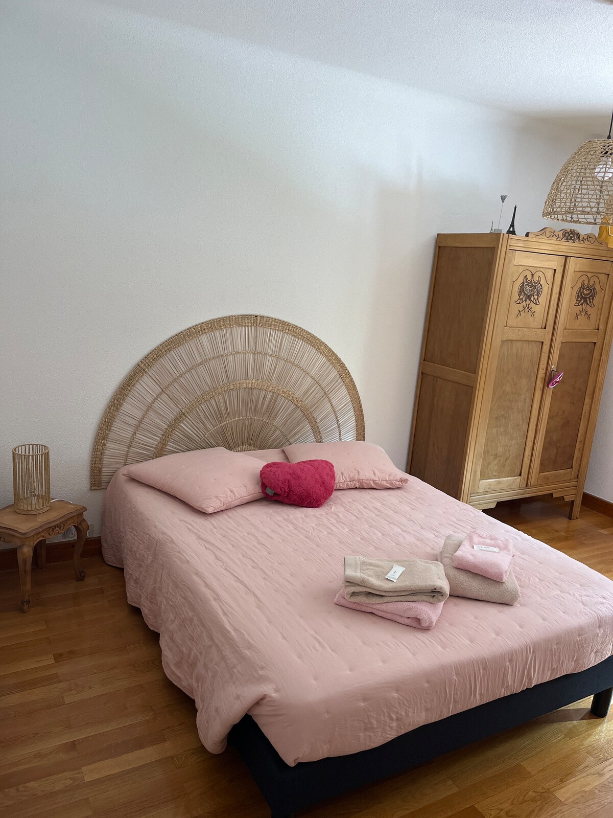 Apartment close to the city center, renovated with all amenities. - 1 double bedroom with storage. - 1 bathroom with towels and hair dryer. - 1 separate WC - 1 equipped kitchen (induction stove, TASSIMO machine, kettle, microwave, fridge, washing machine, dishes available). - 1 dining room with TV, table with 4 chairs, sofa bed for 2 people. - Fiber WiFi. - Linens provided.