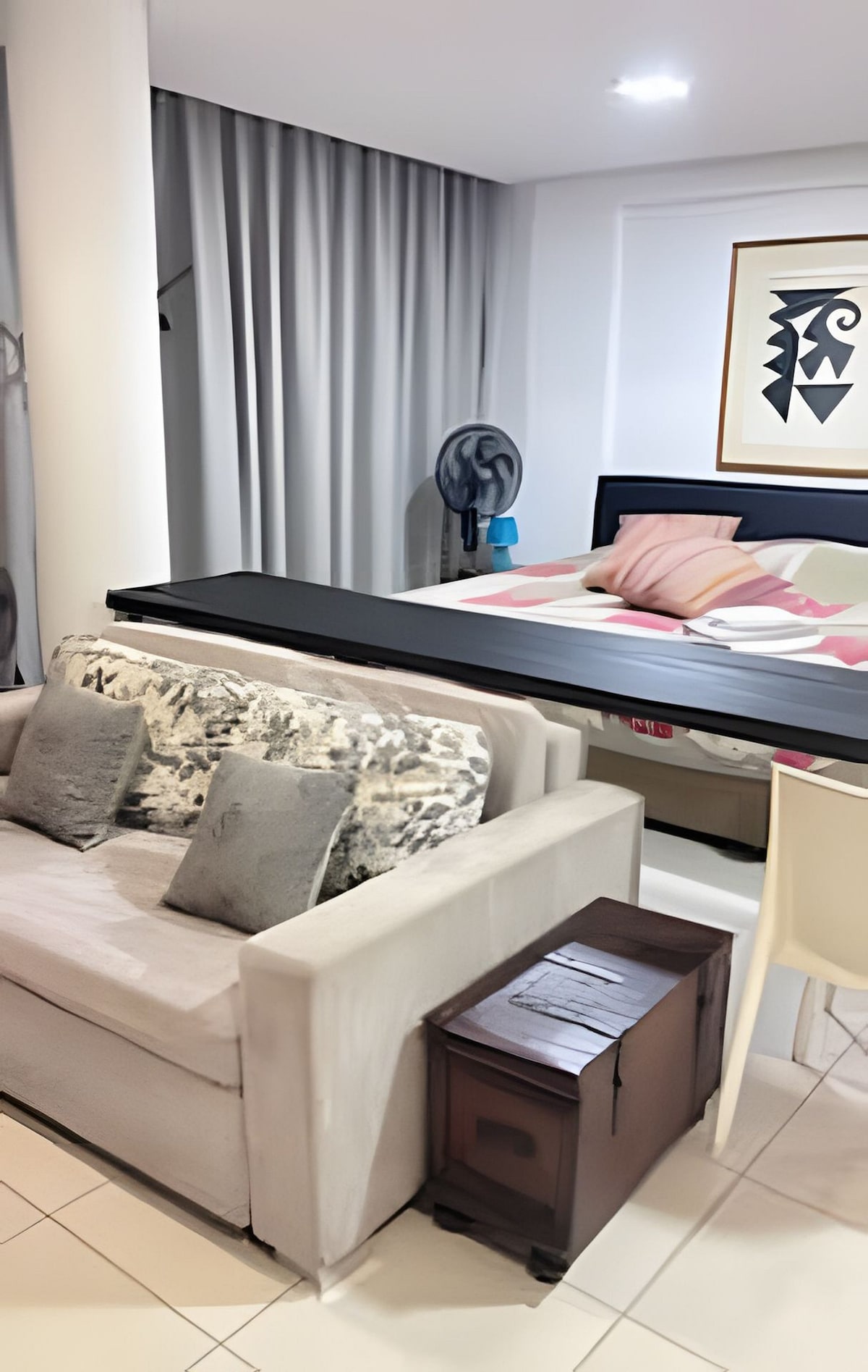 Loft located in the central area of BH, overlooking the bus station, on the 24th floor. The loft has a full kitchen, bathroom, living room and bedroom with a tatami-style double bed. The loft has custom-made and modern furniture, as well as a super comfortable sofa bed and 55” TV. There are curtains in the living room and bedroom. Tower fan and humidifier. 24-hour concierge, good quality fitness center, modern building. There is no garage, but there are parking lots nearby. Neighbor to several BH postcard attractions.