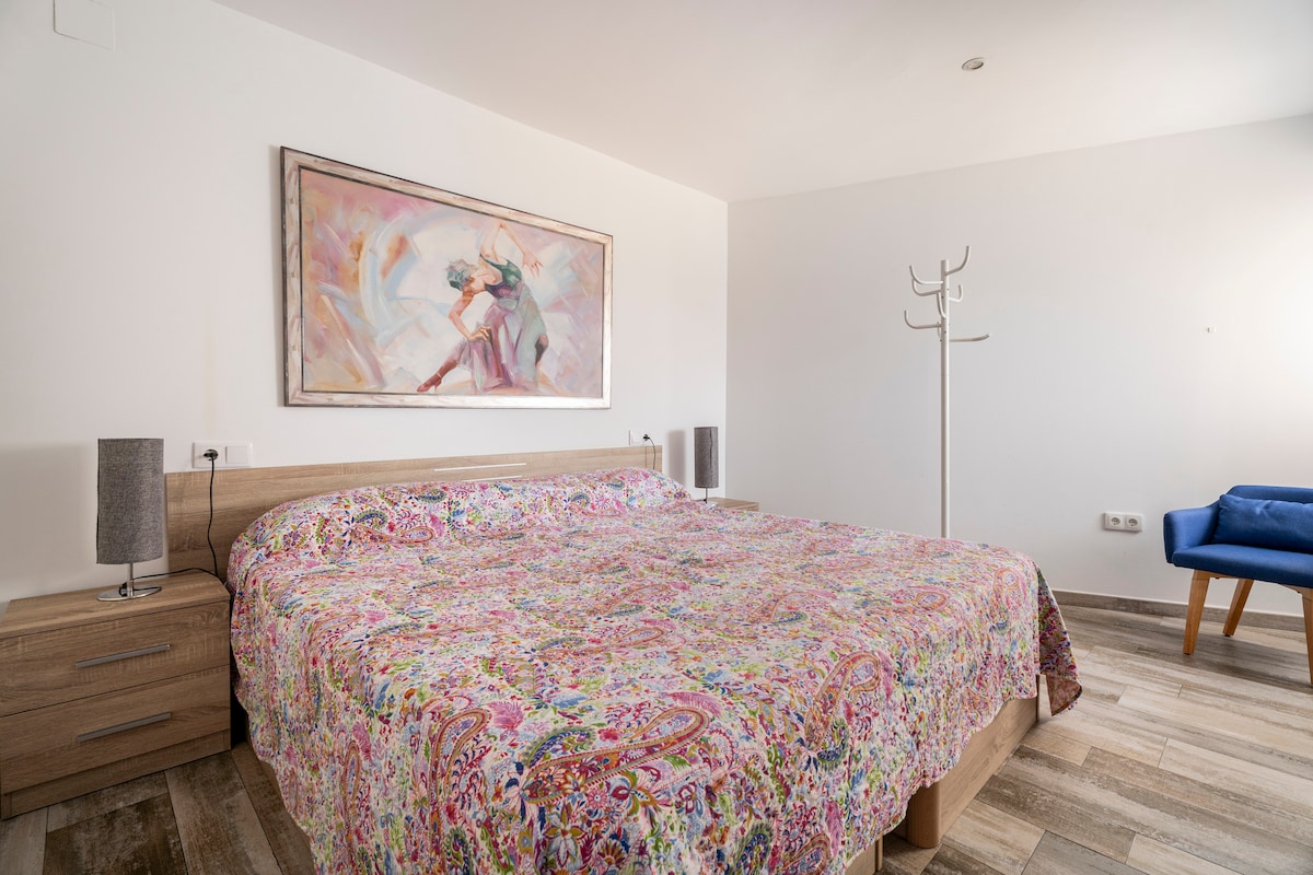 This is a quiet building and the Community of Owners DOES NOT ACCEPT GROUPS. It is ideal for over 50's, couples or for elderly people. Comfortable two bedroom corner apartment, fantastically located on the beach front promenade. Incredible views. Beach is 10m away. Suitable for up to 3 adults. Recently renovated with high quality materials. It has air conditioning, heat pump, automatic awnings, Wi-Fi (600Mb) and 55" Smart TV (Prime, Netflix with guest's account), satellite TV (ITV, Channel 4).