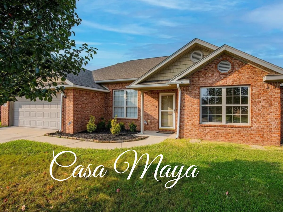 Quiet, light-filled home in the heart of Northwest Arkansas. Features a queen bed in the bedroom and a full-size pullout sofa in the office, accommodating up to four guests. The office also has an adjustable standing desk, fast Wi-Fi, and a professional Zoom backdrop. Original artwork and colorful charm make the space comfortable and fun. Peaceful dead-end street with garage, private drive, and quick access to Bentonville, Fayetteville, and more.