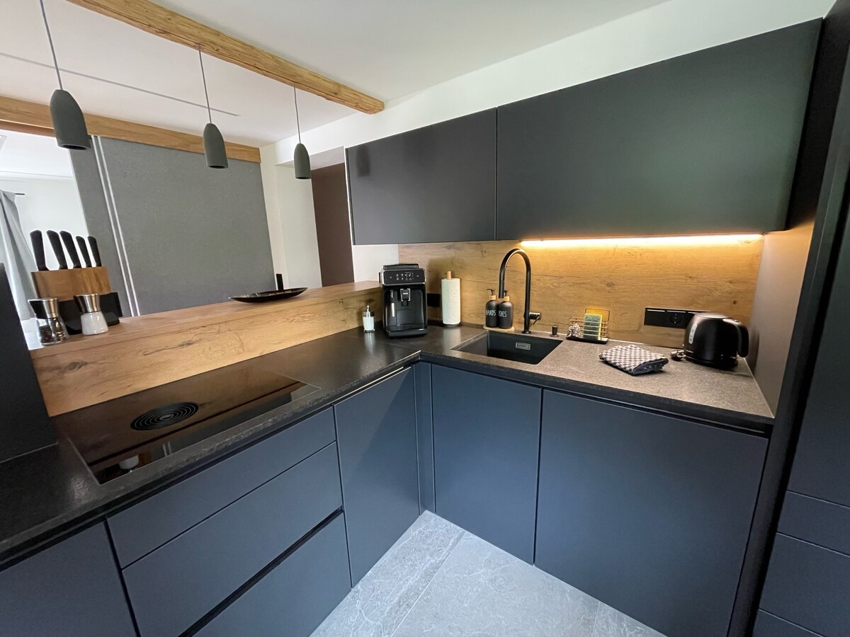 The apartment has recently been completely renovated, has a state-of-the-art interior and consists of an open space of 65 M2, which creates a very open and free feeling. The unique view over Lake Wolfgang can be enjoyed to the fullest. The luxurious bathroom including a huge bathtub, in combination with the ambient lighting, ensures ultimate relaxation. A box spring bed, a modern kitchen and a comfortable sofa ensure a perfect holiday feeling.
