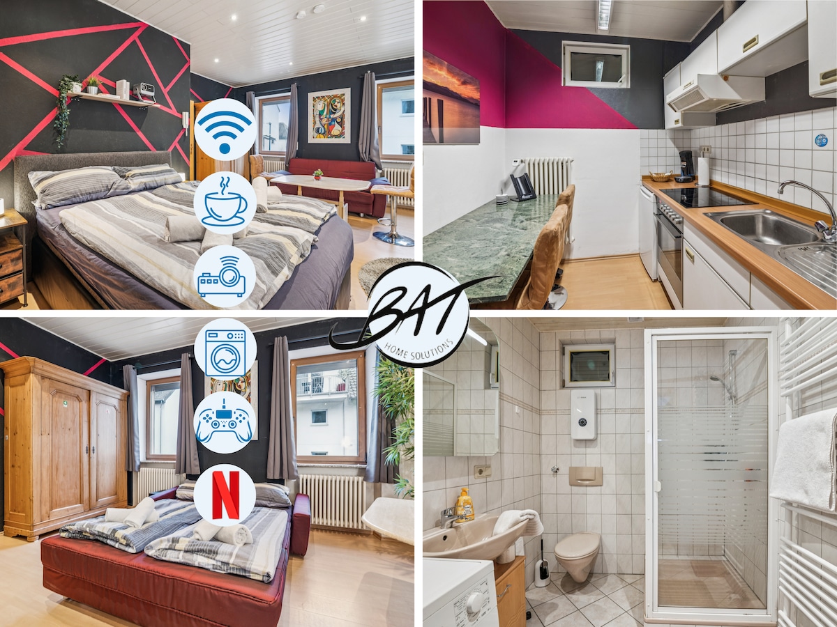 Eurenerstrasse 179 ist ein Apart - Hotel mit sechs individuellen Apartments, jedes mit eigenem bad, Doppelbett 140X220cm, kleiner Kochnische, Ess/Arbeits Tisch, Leder Sofa und Sofatisch, Tresor, Smart TV, High Speed Internet verbindung und abschliesbarer Sicherheitstür. Des weiteren können alle Apartment Haus Gäste kostenlos im Fitnessstudio Clever-Fit (Im Speyer 9 in 54294 Trier, ca 800m Entfernung vom Apartment Haus) Trainieren inklusive frei Getränke und Solarium.