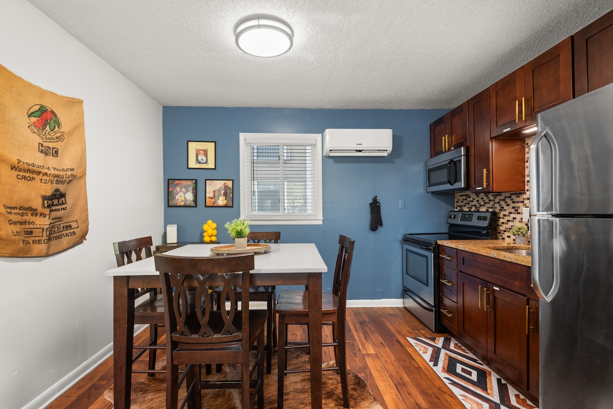 Stay steps from Nashville’s iconic 12South district, home to trendy restaurants, coffee shops, and boutiques. This boutique 1BR apartment offers a private balcony for people-watching, a fully equipped kitchen, and complimentary local coffee. Perfect for solo travelers or couples looking to experience the best of Music City from the heart of it all.