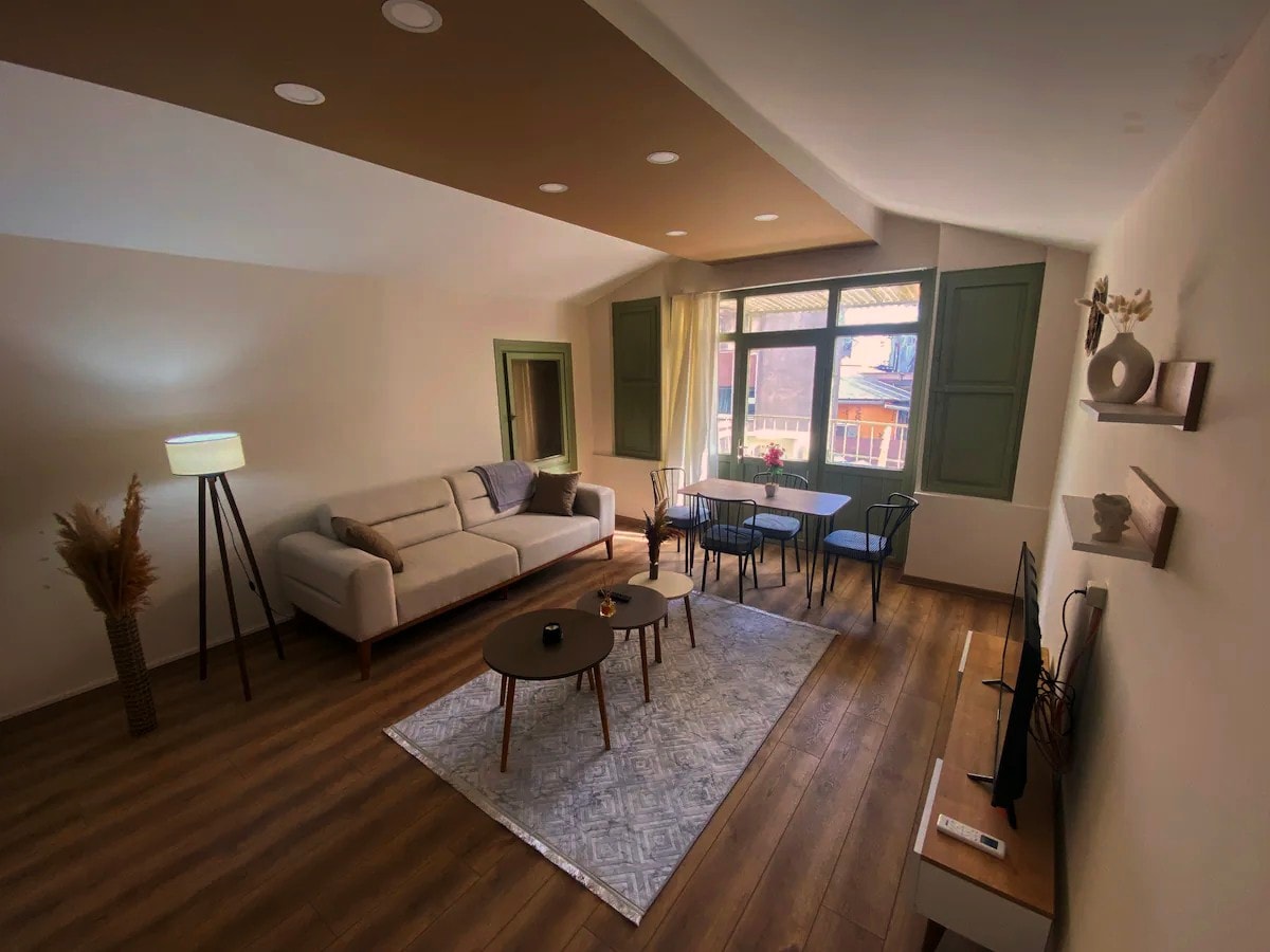 Located in the heart of Ortaköy, this stylish and spacious detached apartment has been newly decorated with a modern touch. With large windows that let in plenty of natural light, the high ceilings and comfortable living space offer you a relaxing stay. You can enjoy cooking in the fully equipped kitchen and unwind in the elegant living room. You'll experience a peaceful atmosphere. Perfect for both business trips and vacations!