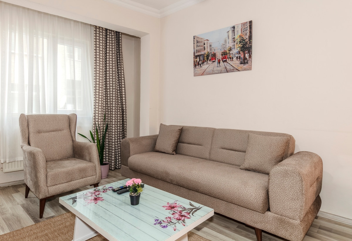 Gelin bu özel, sessiz ve sade evimizde kalın, şehir merkezinin kalbinde yer almaktadır. Bu geniş ev, bir grup seyahat arkadaşı veya huzurlu bir konaklama arayan bir aile için mükemmeldir.İstanbul'un kalbinde yer alan bu dairede her yere yürüyerek ulaşmanın keyfini çıkarın.Evimiz birçok restorana, alışverişe merkezi bir konumdadır.Olanaklar arasında Yüksek Hızlı Wi-Fi, Tam donanımlı mutfak- Çamaşır makinesi ve kurutma makinesi bulunmaktadır.
