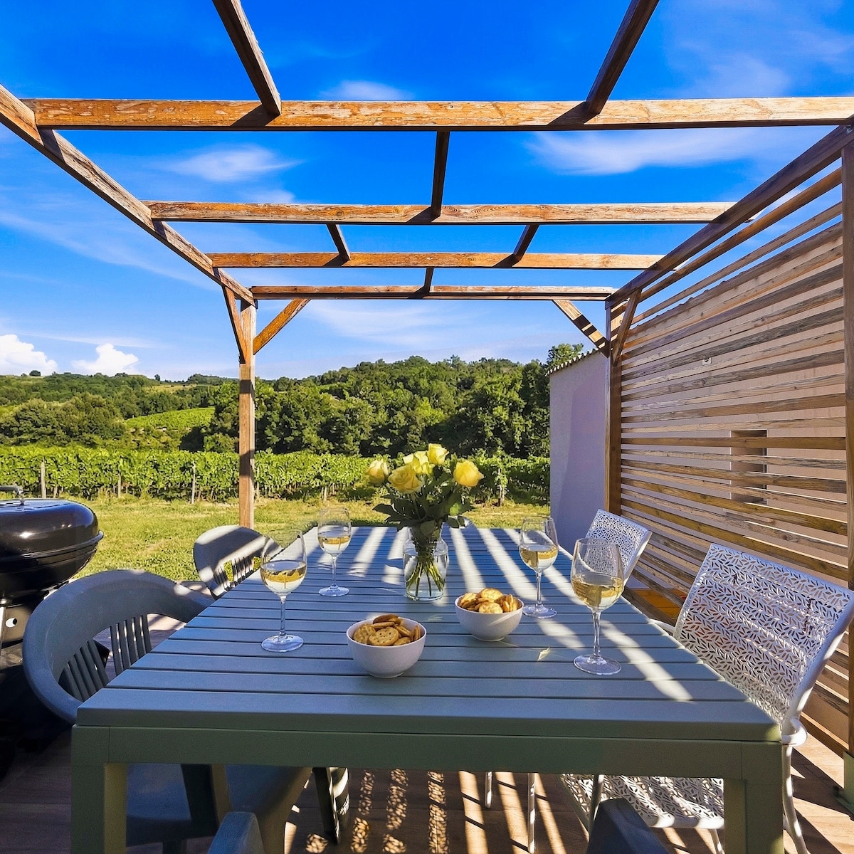 Located 30 minutes from the Gorges de l'Ardèche and the Chauvet 2 Cave – Ardèche and 5 minutes from Saint-Montan, labeled "Village of Character", the "Les écrins de la Doline" cottages welcome you for a quiet vacation between vineyards and lavender! Our concept for your vacation: do what you want, no constraints, no cleaning, no sheets to bring, no towels either, we take care of everything! The goal is for you to take your vacation at your own pace, active or relaxed