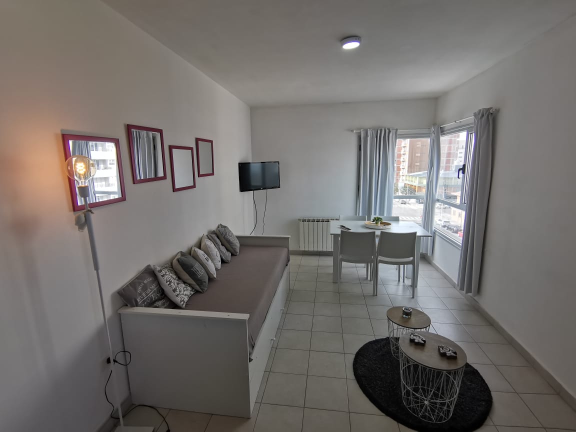 Beautiful studio overlooking the ocean just 10 minutes from downtown Puerto Madryn, and 15 minutes from its busiest beaches; with grill and pool for use, in a pleasant housing complex.