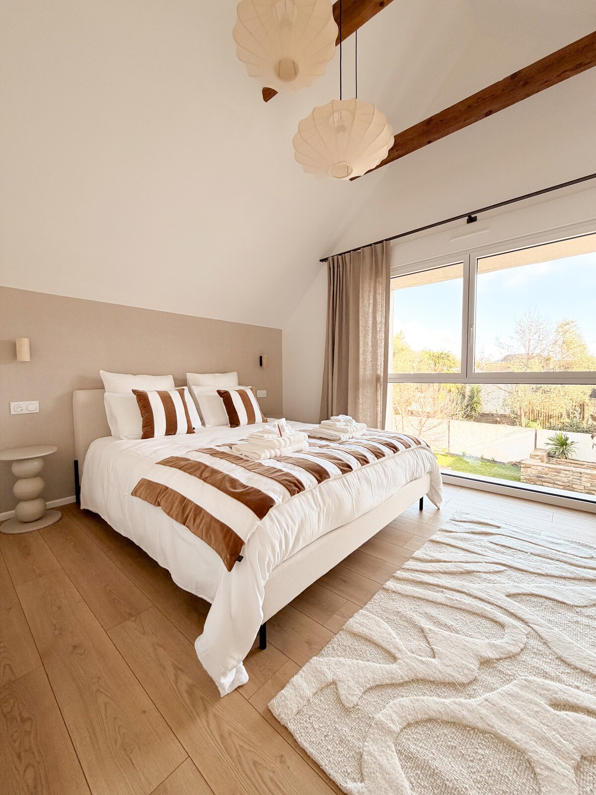 This stylish house in the heart of the charming village of Lechiagat in Guilvinec was completely renovated with taste in early 2023. You are here at the foot (40m) of the beautiful beaches . Scandinavian-inspired, the decoration is neat and the house is furnished with top-of-the-range equipment including quality bedding. The large living room is bright and consists of an open kitchen as well as a lounge area and its fireplace. On the ground floor experience a private Nordic sauna!