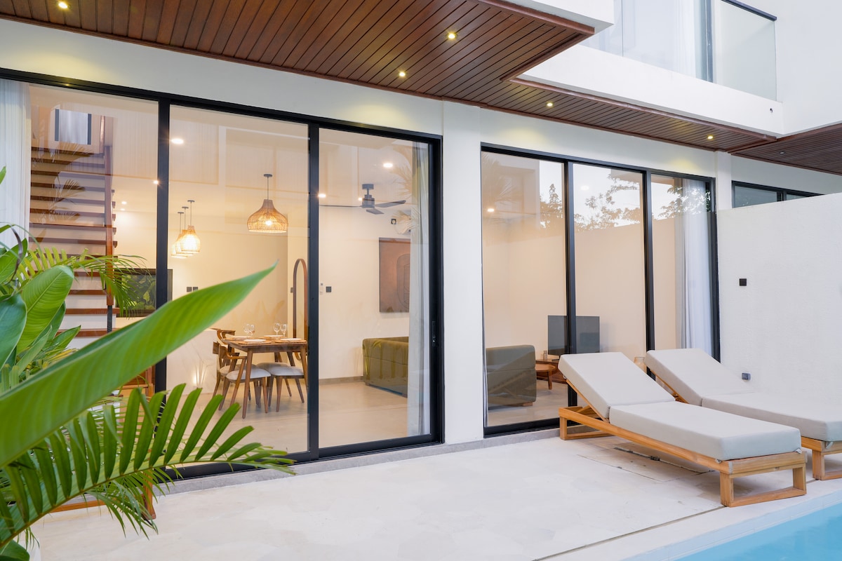 1-Br Villa with Private Pool, 5 Min Walk to Dreamland Beach. This brand-new, stylish 2-story villa in Dreamland, Pecatu offers the perfect blend of luxury, privacy, and location. ✔ Spacious 1 bedroom / 1.5 bathrooms ✔ Private swimming pool ✔ Open-concept living & dining area with sleek modern design ✔ Fully equipped kitchen with everything you need for a longer stay ✔ High-speed 200MBPS Wi-Fi & Smart TVs in the living room and bedroom ✔Super King-size bed, walk-in wardrobe, and private balcony