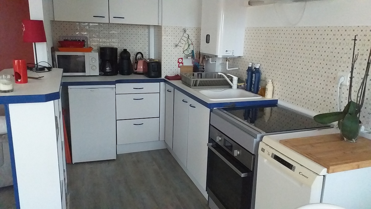 Small apartment composed of a bedroom with linen provided, living room with equipped kitchen, sofa bed 120 wide that can accommodate 2 children or 1 adult, bathroom, toilet and terrace all in a quiet residence, private parking. Beach and GR34 nearby, port for your walks at sea or to eat and all kinds of shops, cinema and casino... Possibility of overnight stay on request and availability Special offer on request: 3 weeks 10% and 1 month 15%