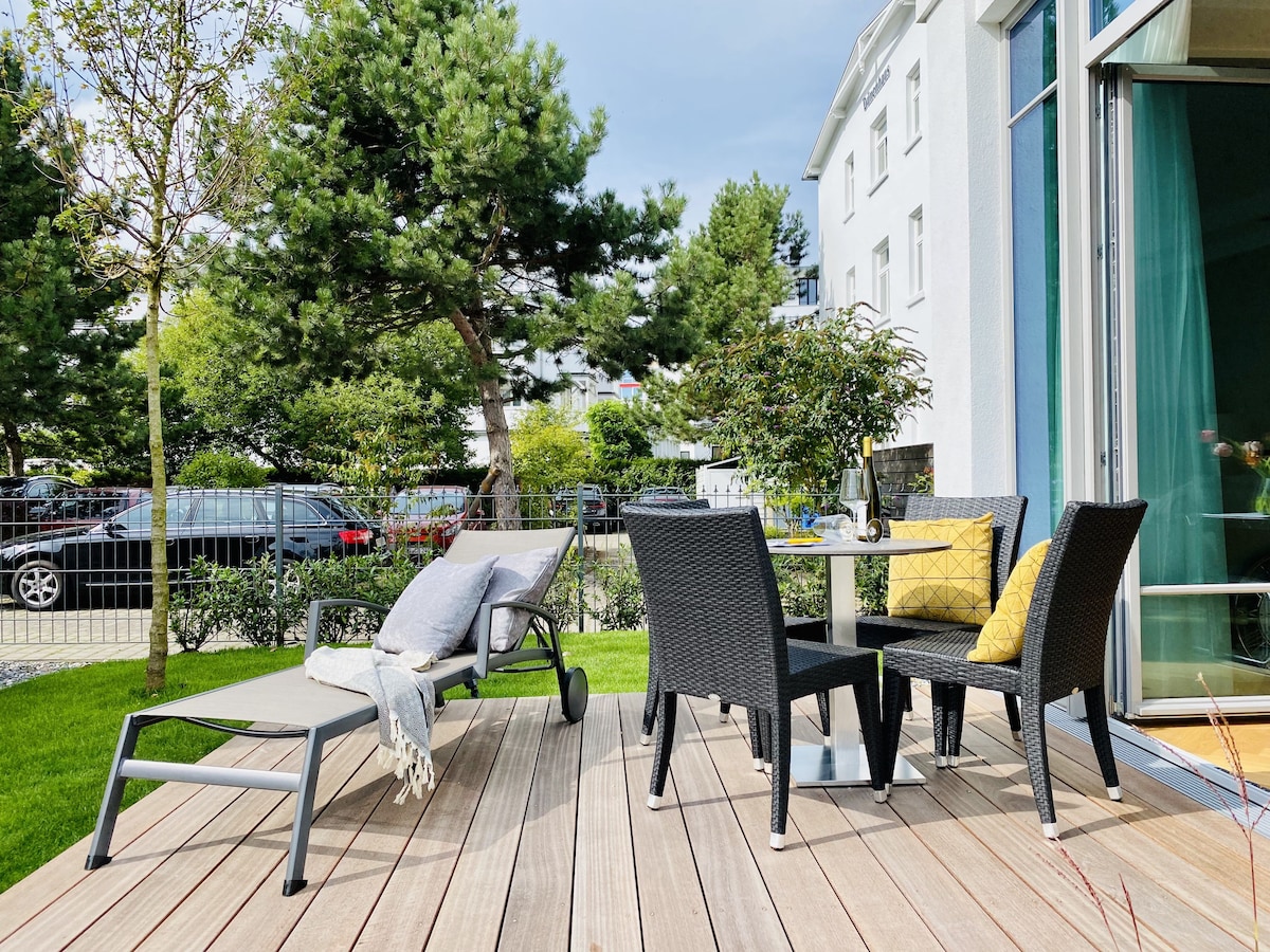 Welcome to the sea! Lovingly furnished with RITUALS, WMF and Nespresso. The high-quality and lovingly velvet in the furniture nestles against modern wooden furnishings for absolute well-being and relaxation. Breathtaking views 365 days a year. Enjoy the view of the bay from the comfortably furnished terrace or take a refreshing swim after the sauna. Short distances to shopping included. And the AHOY! Adventure pool including sauna thermal bath is free for you!