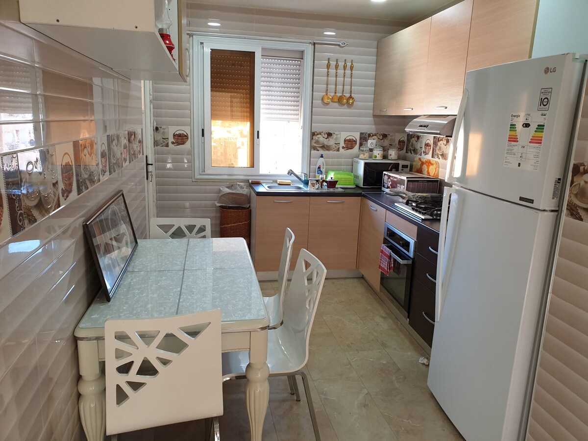 A Modern furnished apartment; in a quiet area, but very close to the busy street of Sidi Yahia. - parquet floor/Central Heating/Smart TV/AC/ Free Wifi/Dressing/balcony for drying Clothes and washing machine/Iron/Microwave/Electric Kettle/Kitchenware/Towels/Cleaning Products - 24/7 agent available for your help during your stay in Algeria