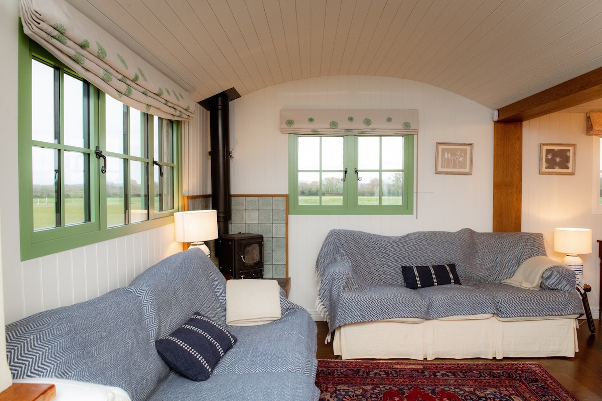 Reconnect with nature at this unforgettable escape. Our luxury Shepherd hut awaits guests to experience a taste of the Cotswolds. Based in the village of Charlton , between Evesham and Pershore you will wake up to spectacular views . Five minute walk to village pub . Do check opening times . Hotel quality bed mattress with luxury linen for the best rest . Underfloor heating . Private parking space .with New EVC . WFi /TV /Netflix . Area is secure and safe for dogs. Strictly no CHILDREN