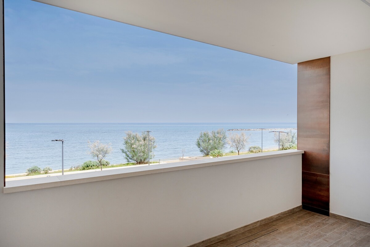 Three-room apartment with sea view, private parking and beach