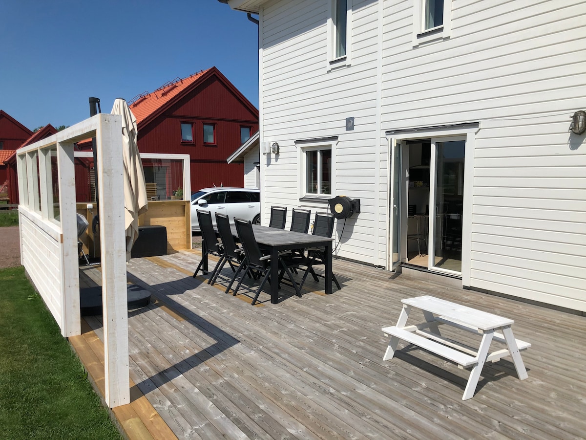 Brand new home with a new interior and a small patio space. The sea is 10min away by bike, bicycles are available to borrow. Restaurant and shop is located 10 min away with bike 10 min walk to bus that takes you to Gothenburg city centre in 25min