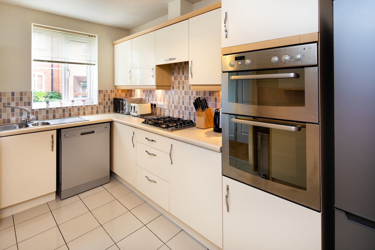 3 bed home, sleeps 6 people, free parking for 2 cars, plus free on street parking. WiFi, x2 private off road parking, Netflix, Amazon, Disney+. external CCTV NOTE: strictly no parties, large gatherings or stag/hen dos. 🎪Self-check in and close to Central MK, MK Hub, Xscape, M1, MK Dons, Silverstone, Bletchley Park, and various supermarkets. 🌟Perfect for contractors and families. Discounts available for long stays. 🌳Location: Redhouse Park - next to Linford Lakes.