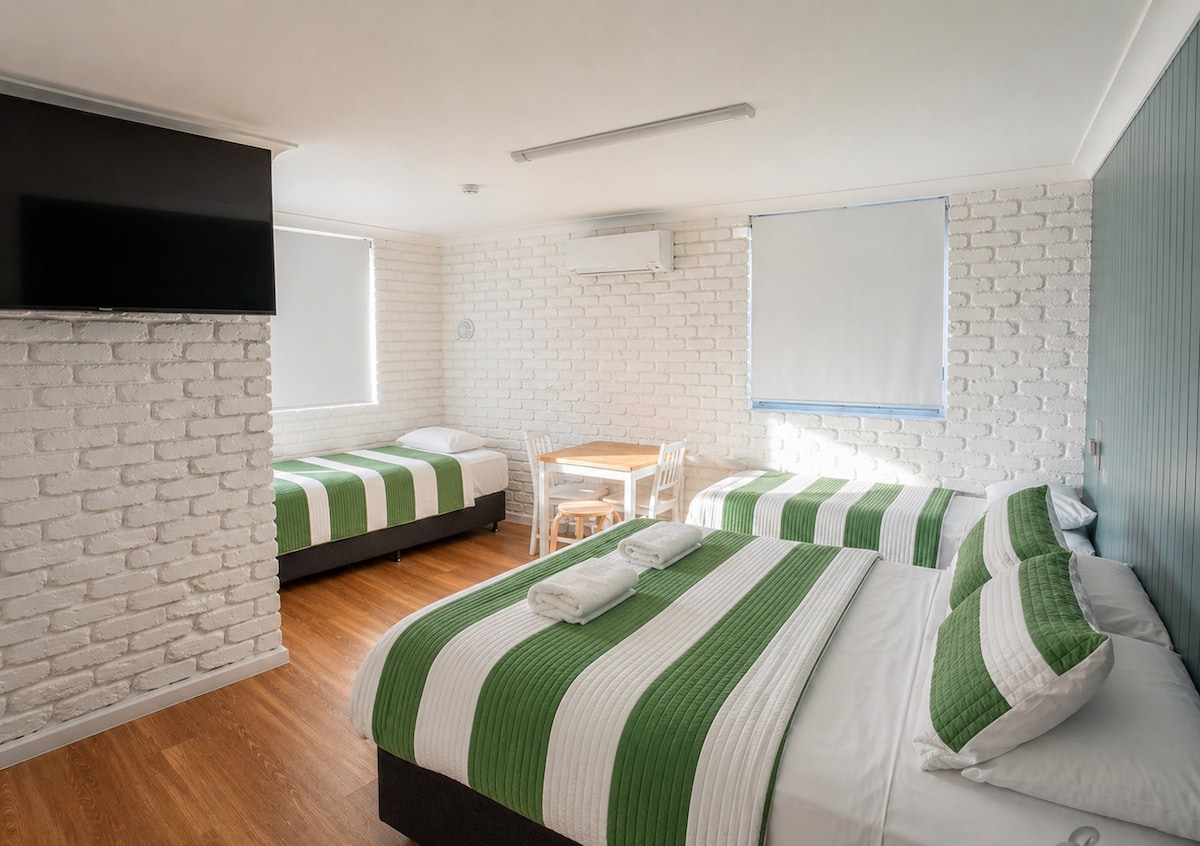 We are a small Budget Hotel situated on a quiet tree lined street , walking distance to the city and train station ,in your room you will have a tv, fridge, A/C (some) all linen supplied wifi, a communal kitchen so you are able to cook your own food if needed We also ensure security with an in house night caretaker , no long leases to sign or bonds just pay week to week .long term stays are welcome