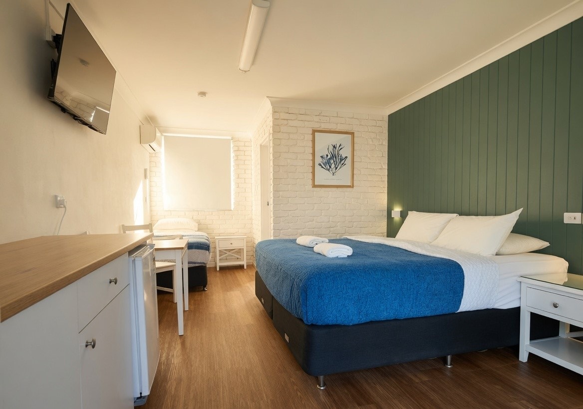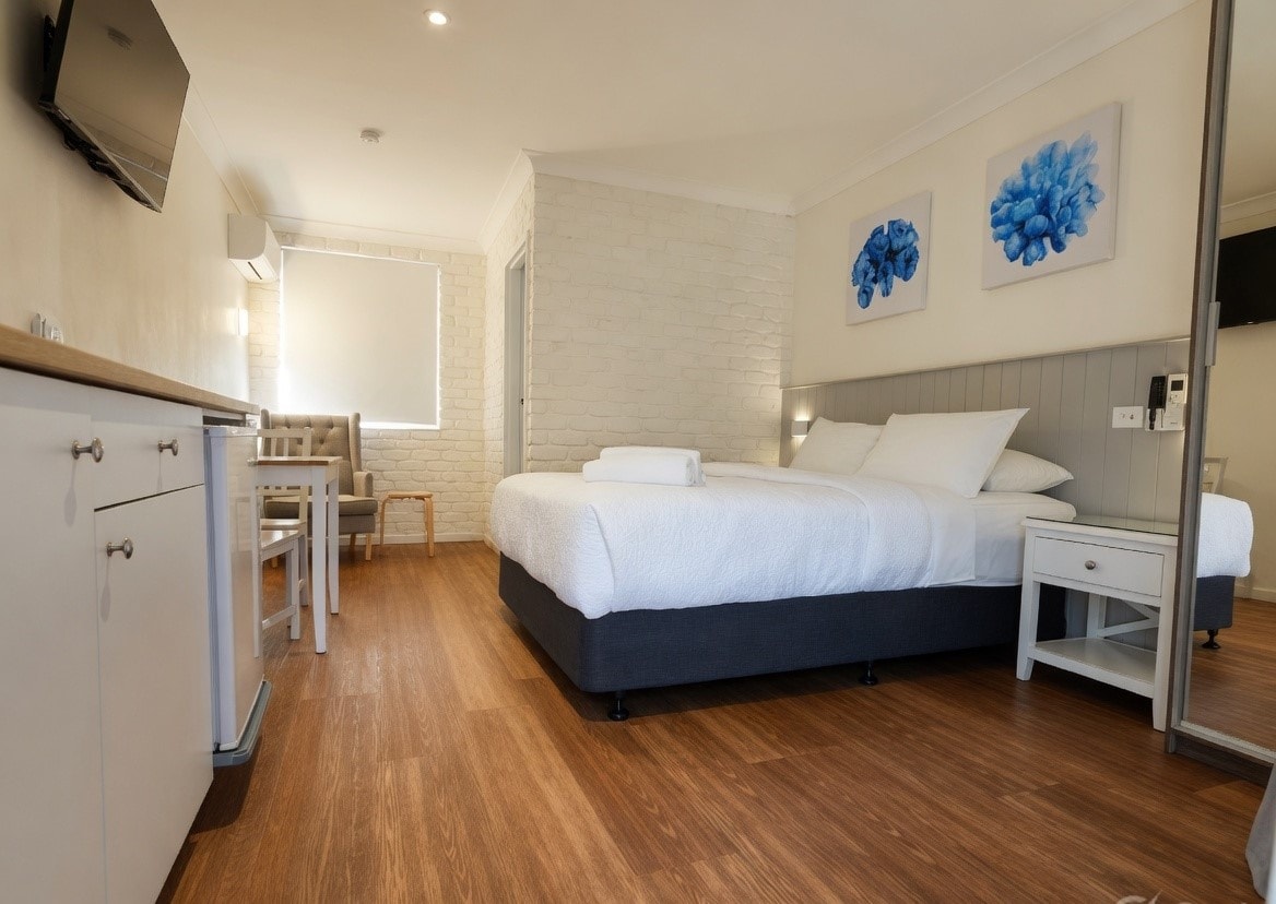 Situated across Wyrrabalong National Park and Shelly Beach, Bateau Bay Beach, Golf Course and a number of Clubs. This room accommodate 2 Adults and can cater to a further Adult or child. Cots, Microwaves and Iron Facilities can be made available upon booking. All our rooms include: Quality Linen and bedding Complimentary Tea and Coffee Reverse Cycle Air Conditioning Flat Screen Smart TVs Foxtel WIFI Bar Fridge Daily Room Cleaning Free Parking