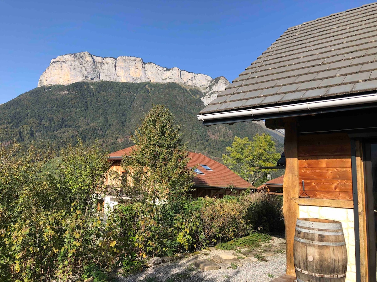 Small independent and cozy chalet, nestled between Lake Annecy and the peaks of the Aravis. Facing south, it enjoys beautiful light and a wooden terrace to enjoy the peaceful view of the Dents de Lanfon. Ideal for a couple, this cozy little nest is perfect for a holiday that is both sporty and relaxing, close to amenities. Although located next to our house, the vacation rental is completely independent and private.