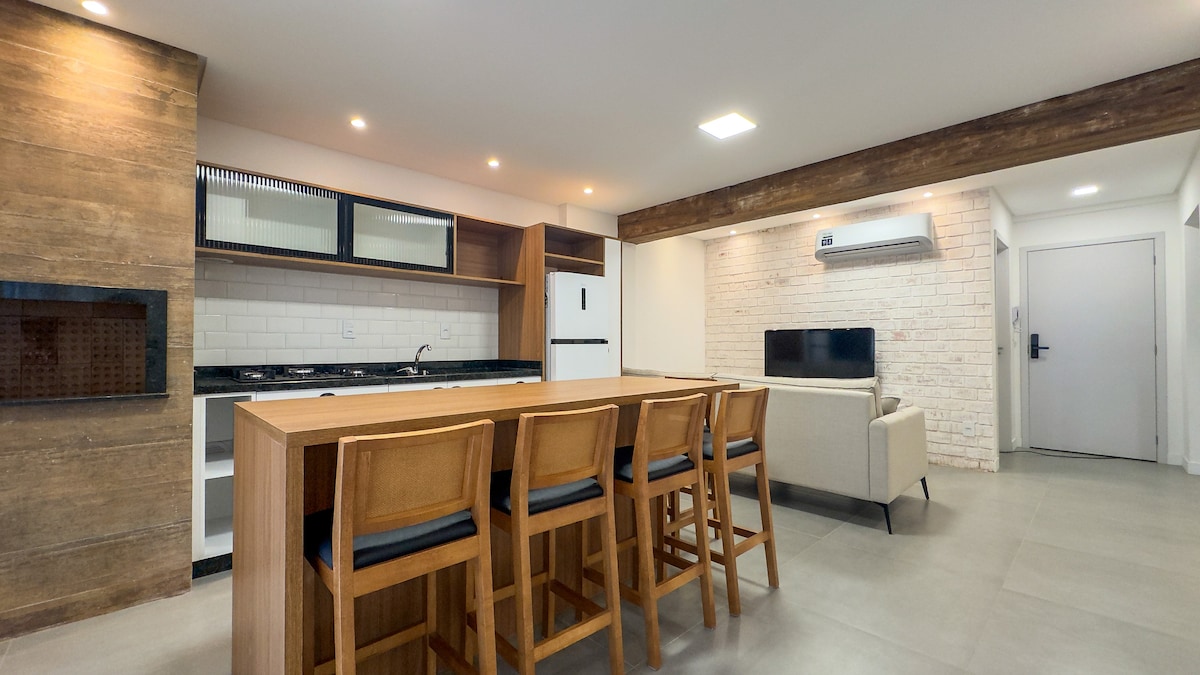 Enjoy an elegant experience in a well-located apartment on a quiet street, ideal for both leisure and business trips. The space has boho-style decor, is cozy, comfortable and designed to make you feel truly at home — a haven in the heart of Blumenau. We are just steps from Rua XV de Novembro and approximately 1.3 km from Vila Germânica, facilitating access to the city's main tourist attractions.