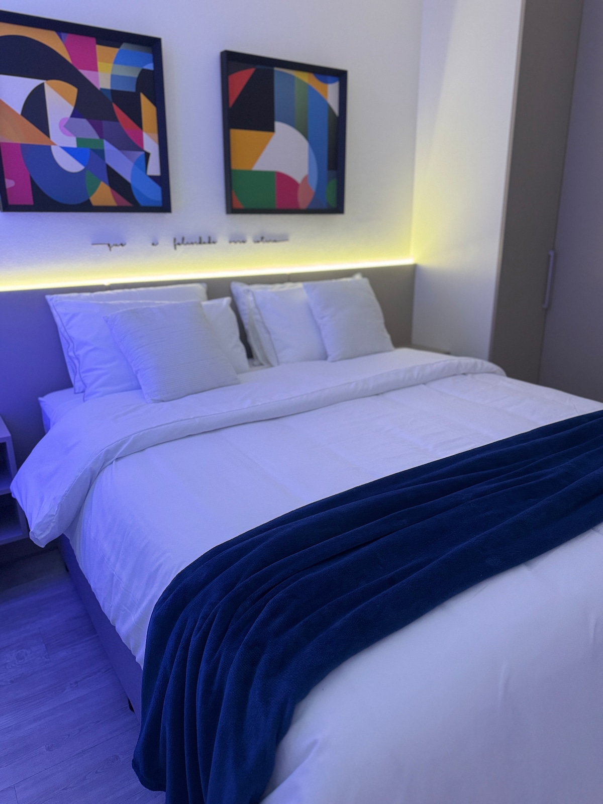 Relaxe neste espaço calmo e cheio de estilo com banheira de imersão aquecida. apto com: 📍01 cama casal tamanho queen 📍01 cama solteiro 📍banheira de imersão aquecida individual 📍tv 42” com Netflix liberado 📍internet 300mbps 📍mesa home office 📍blender para fazer seus shakes 📍 airfryer, microondas, sanduicheira 📍cozedor de ovos elétrico 📍máquina café expresso 📍chaleira elétrica, garrafa térmica 📍enxoval incluso 01 vaga estacionamento . não possui hidromassagem capc Max 100 kg