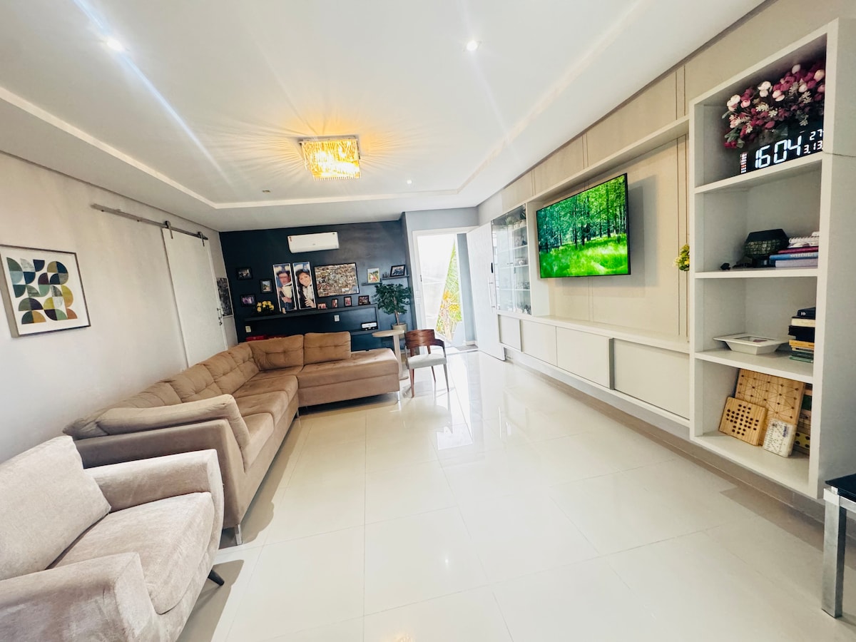 Your family will love this space, totally private, bedroom with 3 beds. 1 double and 2 single bunk beds. Air-conditioned bedroom, living room, kitchen, garage, etc. everything to better accommodate you. The house is close to a supermarket, homemade restaurant, pharmacy, etc. well-located. Downtown neighborhood 5 minutes by car to downtown, the supermarket is a 3-minute walk, the steakhouse is on the corner, Praças das Aguas is a 4-minute drive, and we also have a small square on the corner.