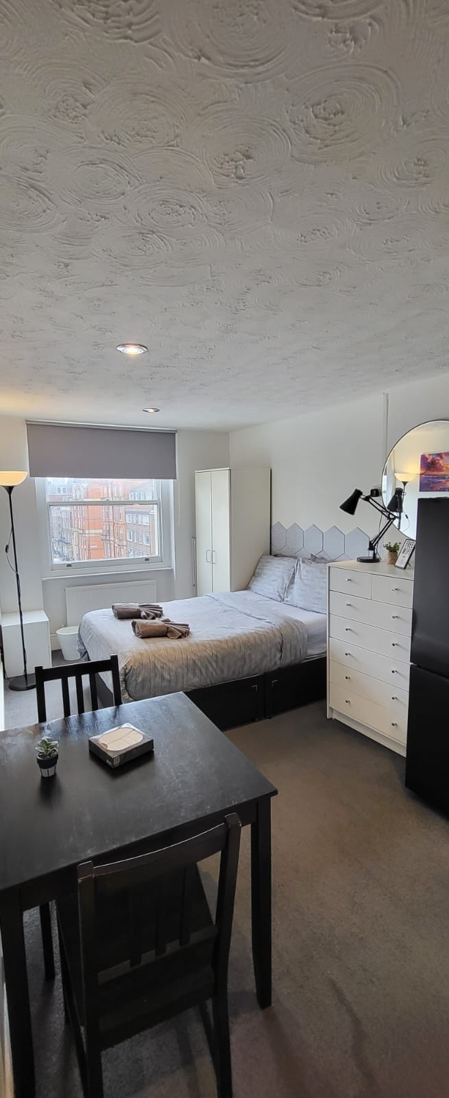Charming studio flat on a high floor with beautiful London skyline views. Located just 3 minutes’ walk from Baker Street Station, offering excellent access to central London and major attractions. The studio includes a private bathroom, fully equipped kitchen, and washing machine. Guests enjoy free Wi-Fi, fresh towels and bedding, hairdryer, and iron for a comfortable and convenient stay. Ideal for short or long visits to London.