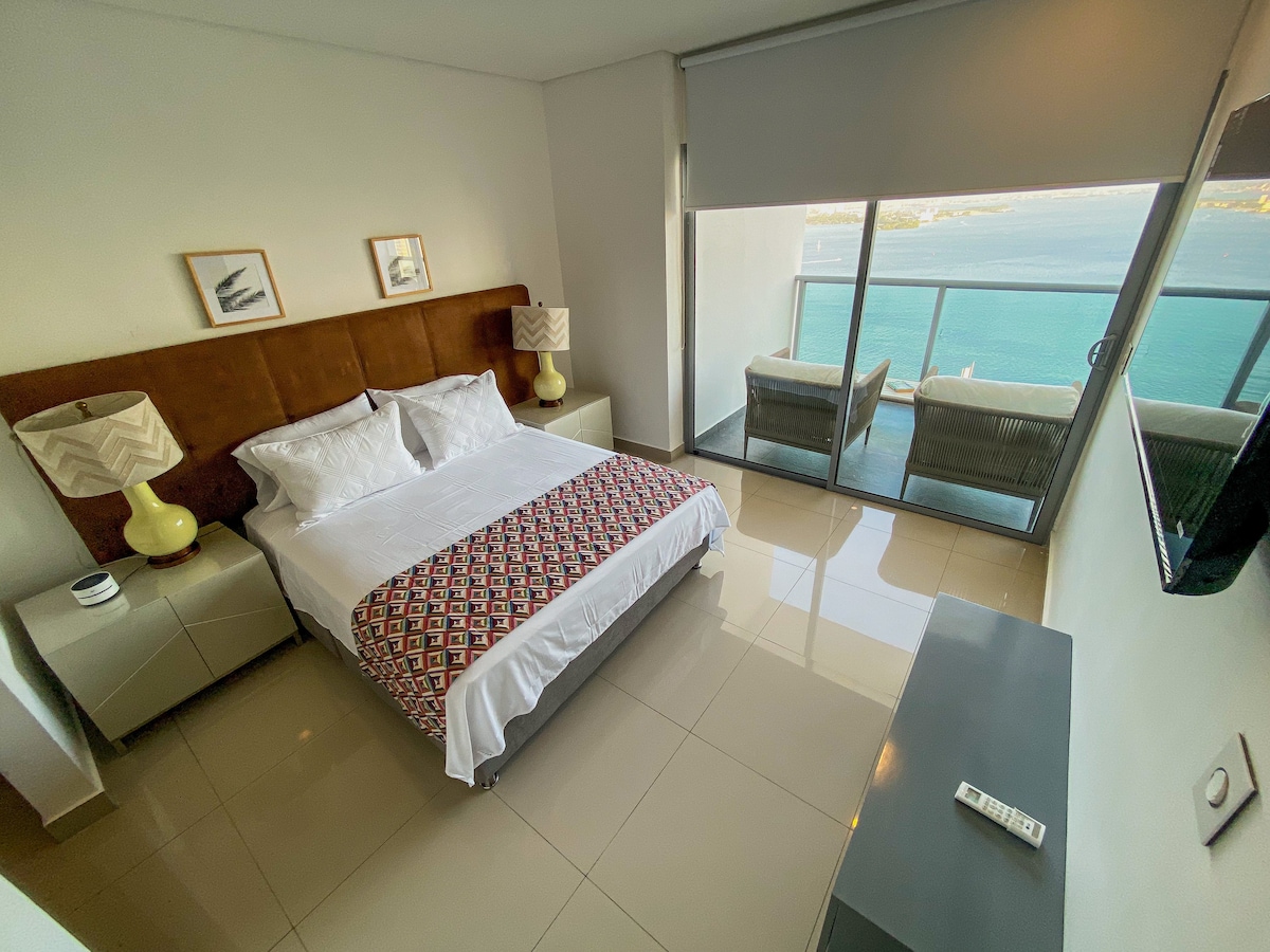 Enjoy an exclusive experience in this modern apartment facing the bay, where luxury, comfort and views combine to offer you an unforgettable stay. In an exclusive sector of the city with access to nearby restaurants in the Bocagrande sector. A few minutes from the Historic Center, the beaches of Bocagrande and the best restaurants and bars in the city. Perfect for couples, business trips, or a romantic getaway