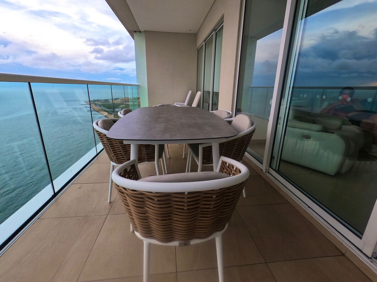 Exclusive 30th floor apartment Morros City with incredible and captivating sea and historic center views. Master bedroom with direct sea view and balcony access. Full kitchen, 2-in-1 washer and dryer, 60" Smart TV, 500MB fiber optic WiFi. Beachfront Bocagrande with luxury amenities: pool, jacuzzi, Turkish bath and gym. Free parking. Ideal for couples seeking the most exclusive experience from the highest available floor in all Cartagena