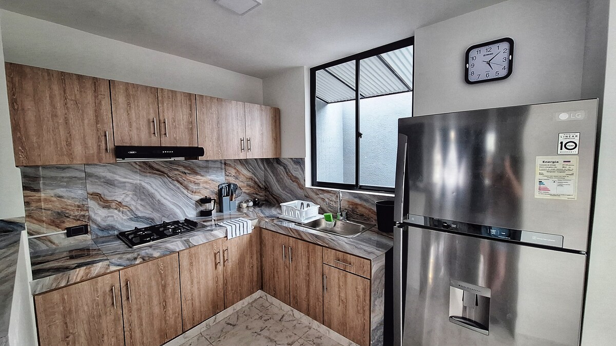 Just 20 minutes from downtown Cúcuta, this stunning house features a private pool, parking, two bedrooms, a full European-style kitchen, and nature views. The perfect place to combine work and leisure in a quiet, friendly neighborhood with a supermarket within the complex. A safe and comfortable spot for your stay in Cúcuta. If you value cleanliness, comfort, and a touch of elegance, we would be delighted to welcome you to our home!