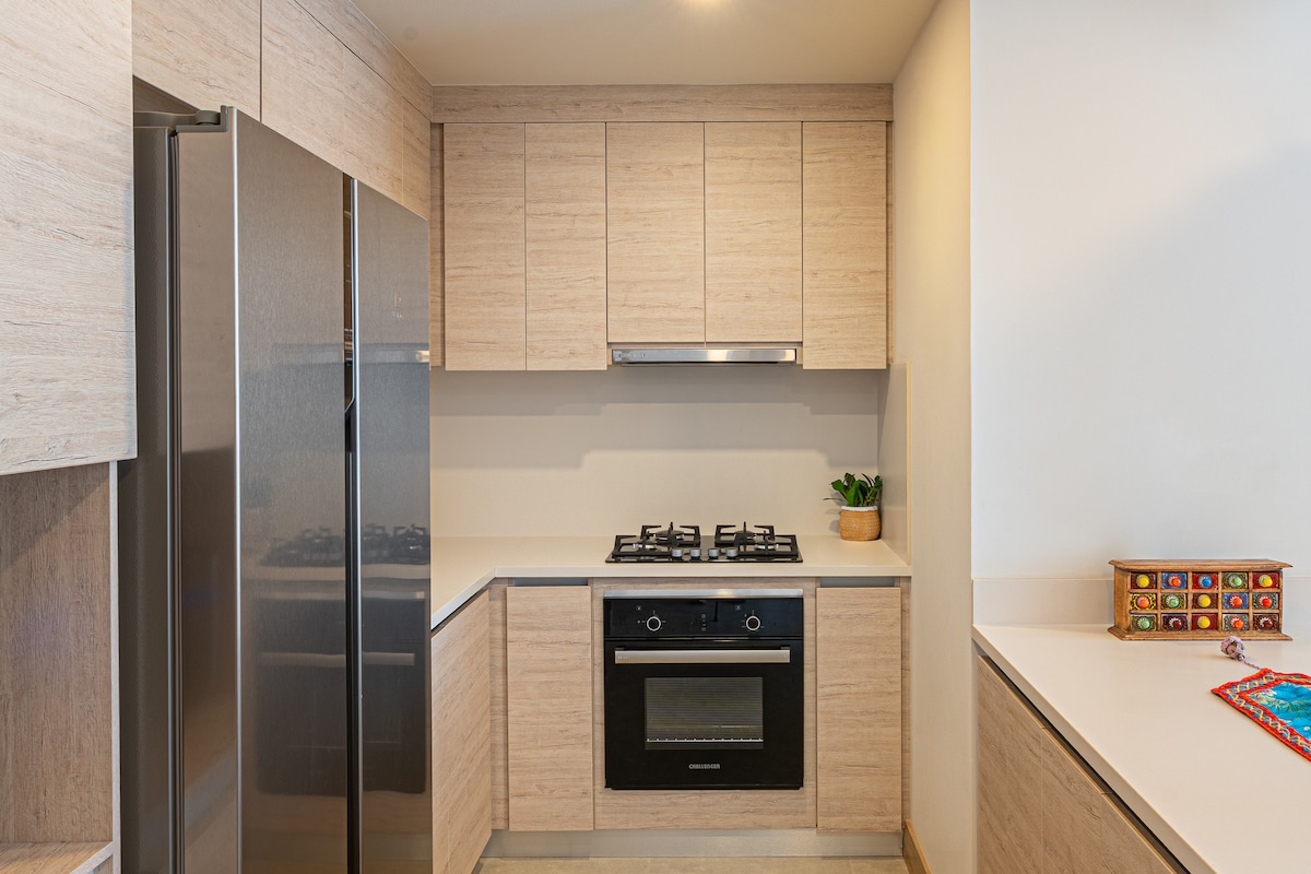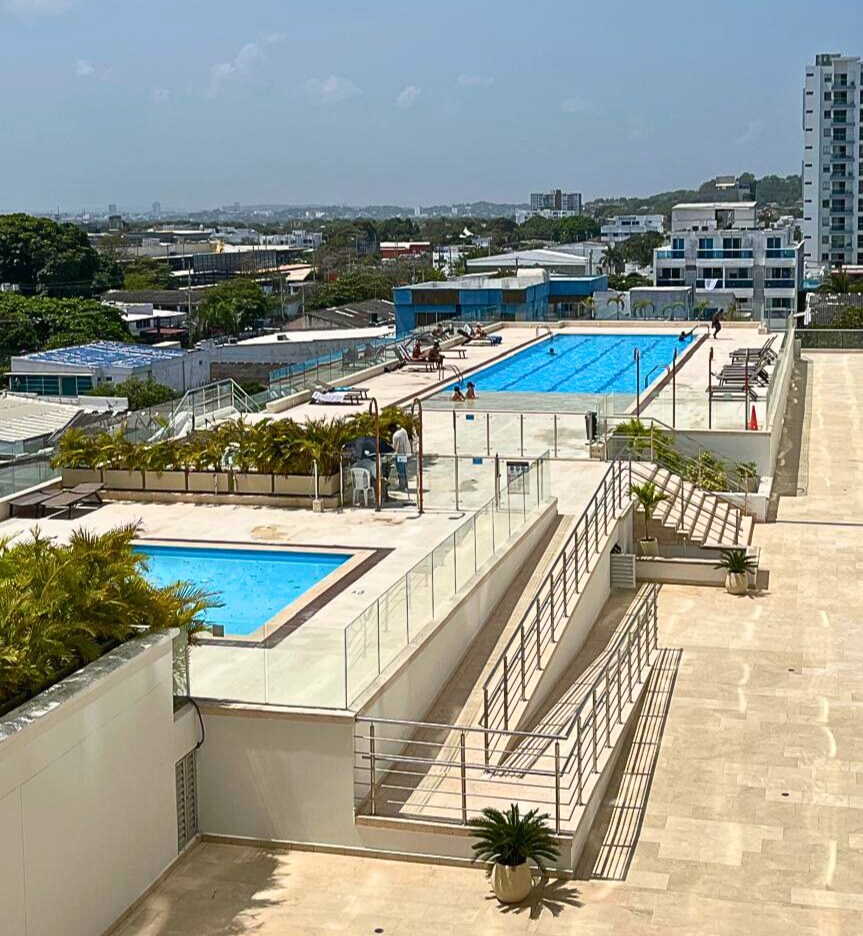 Luxurious brand-new apartment in the exclusive Cartagena Beach resort, Crespo. Modern loft with a queen bed and a large double sofa bed, ideal for up to 4 people. Enjoy its terrace overlooking the pool and the ocean. It features a Smart TV, A/C, hot water, and a fully equipped kitchen. Prime location: 3 minutes from the airport and 8 minutes from the Historic Center.